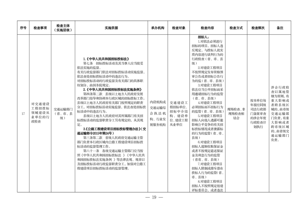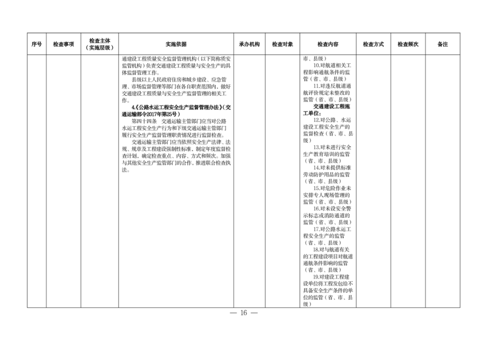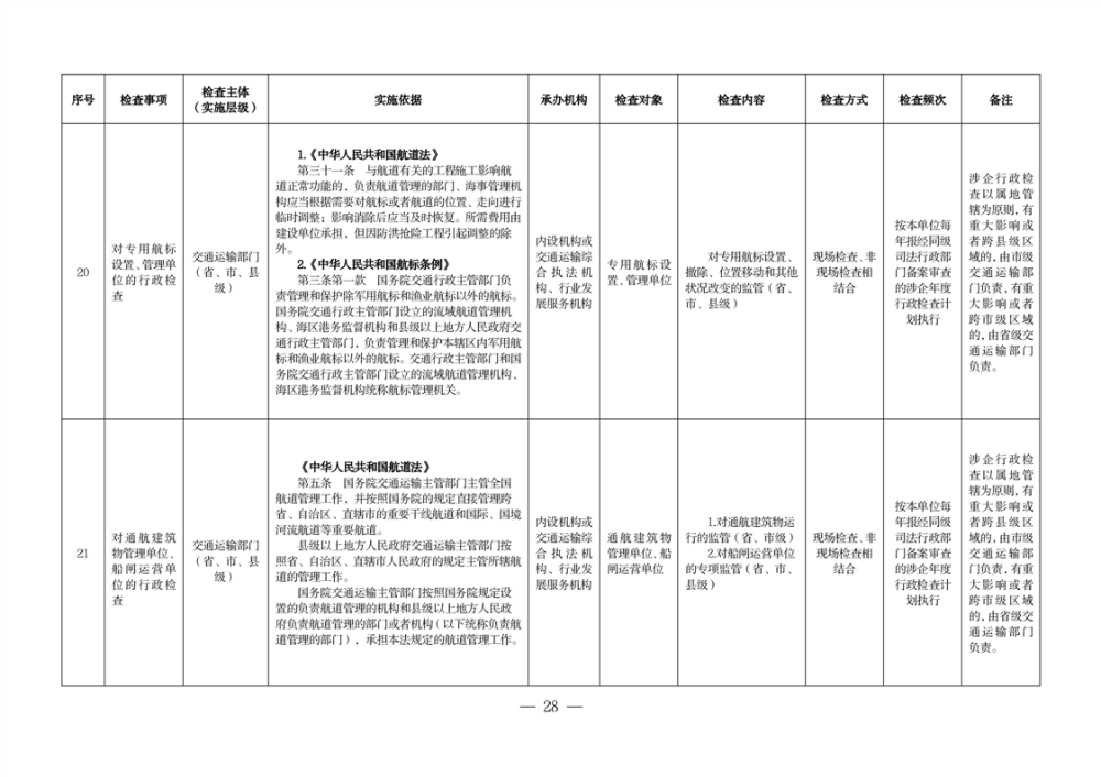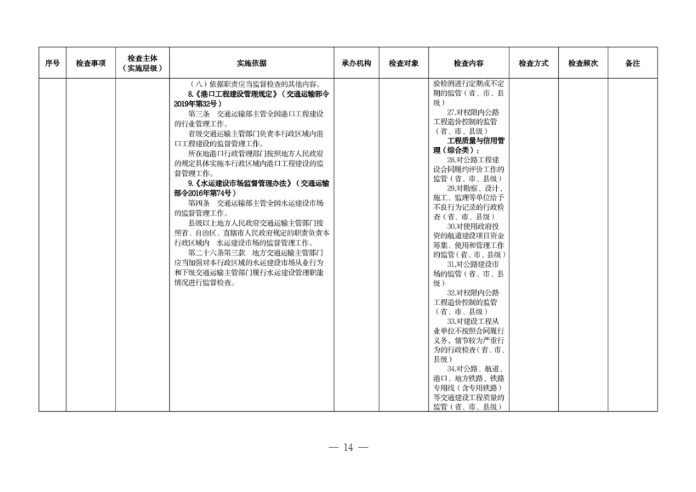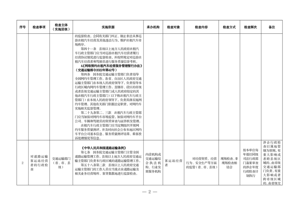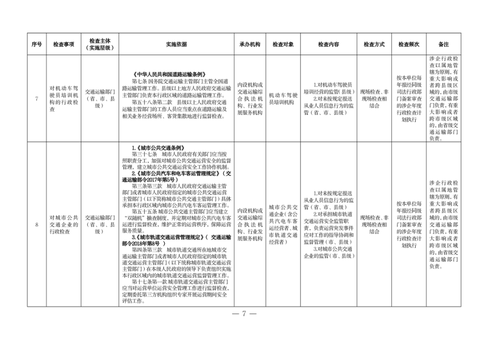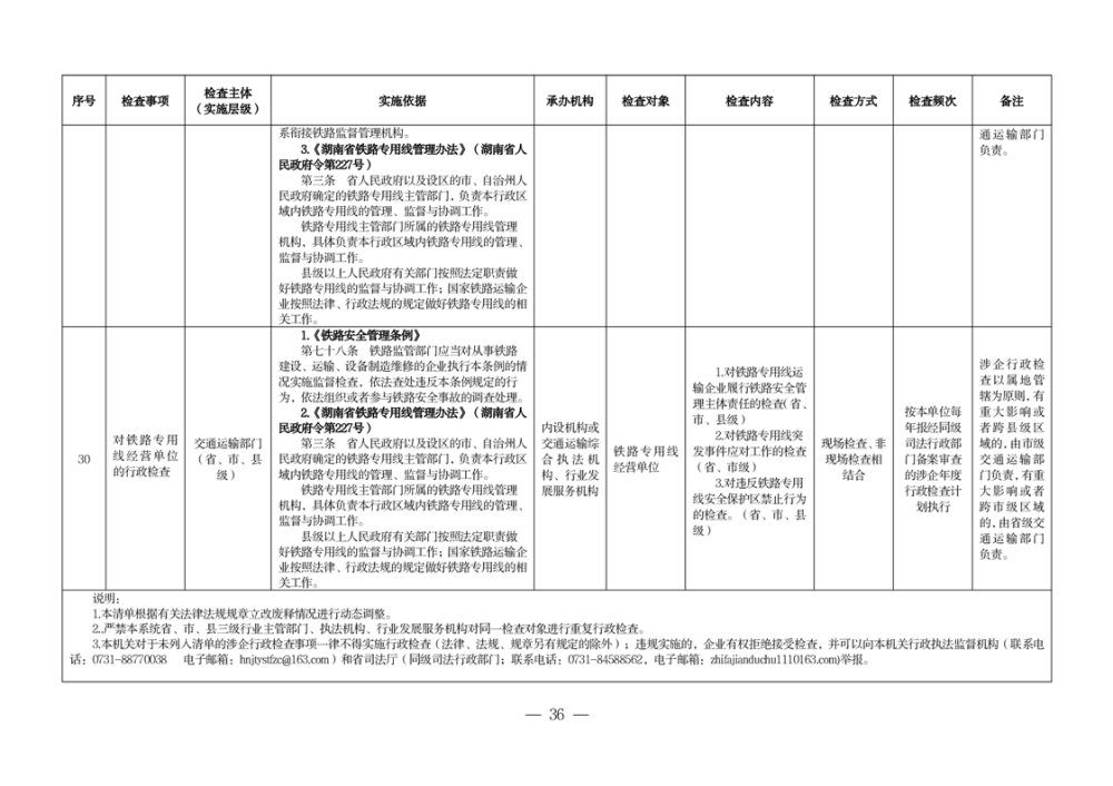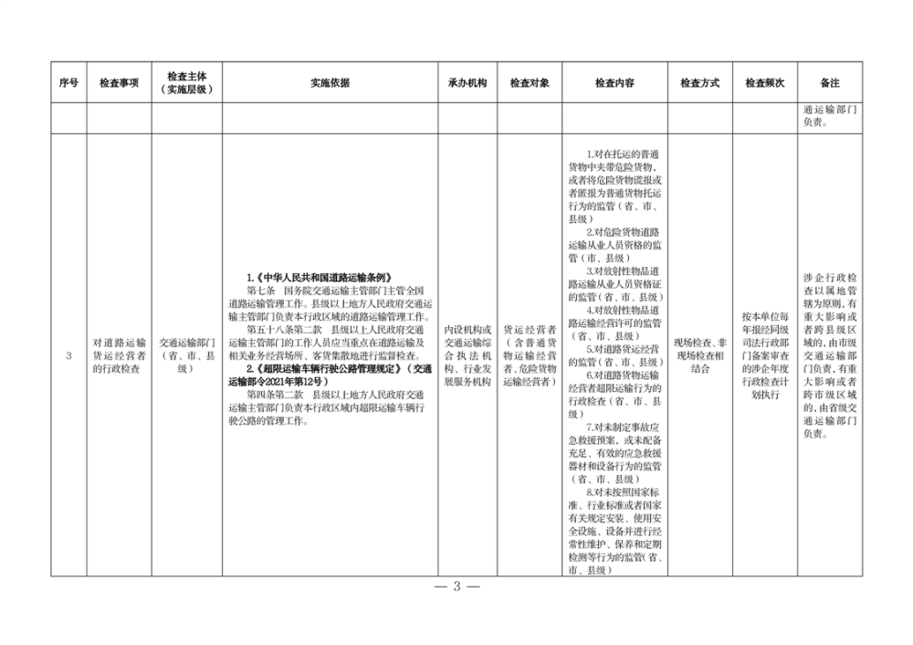 湖南省交通运输系统涉企行政检查事项清单(2025年版)