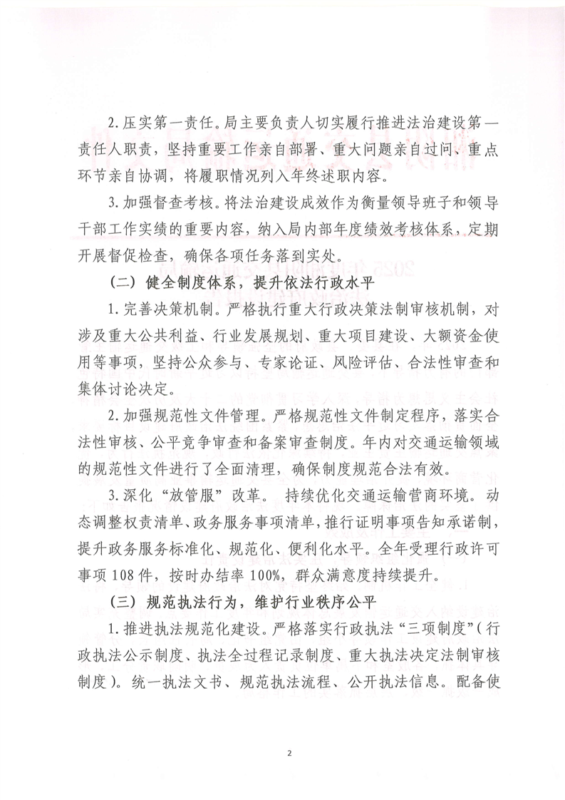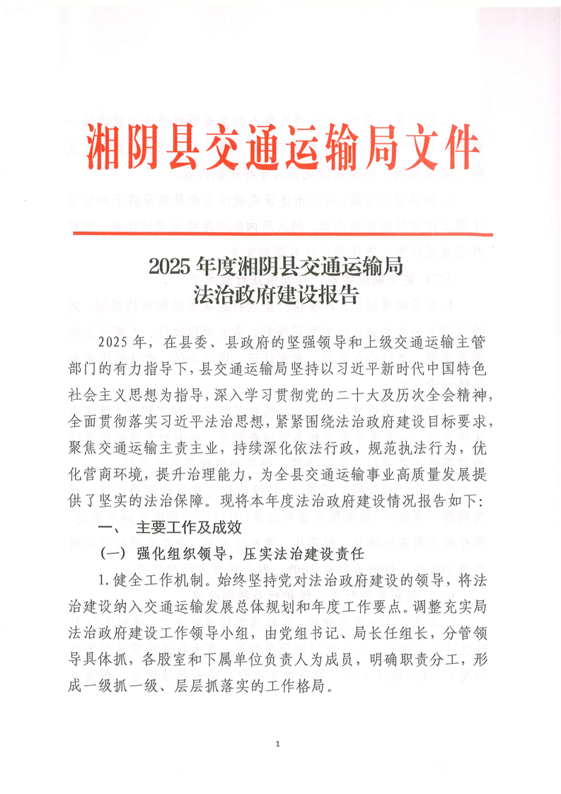 2025年度湘阴县交通运输局法治政府建设报告