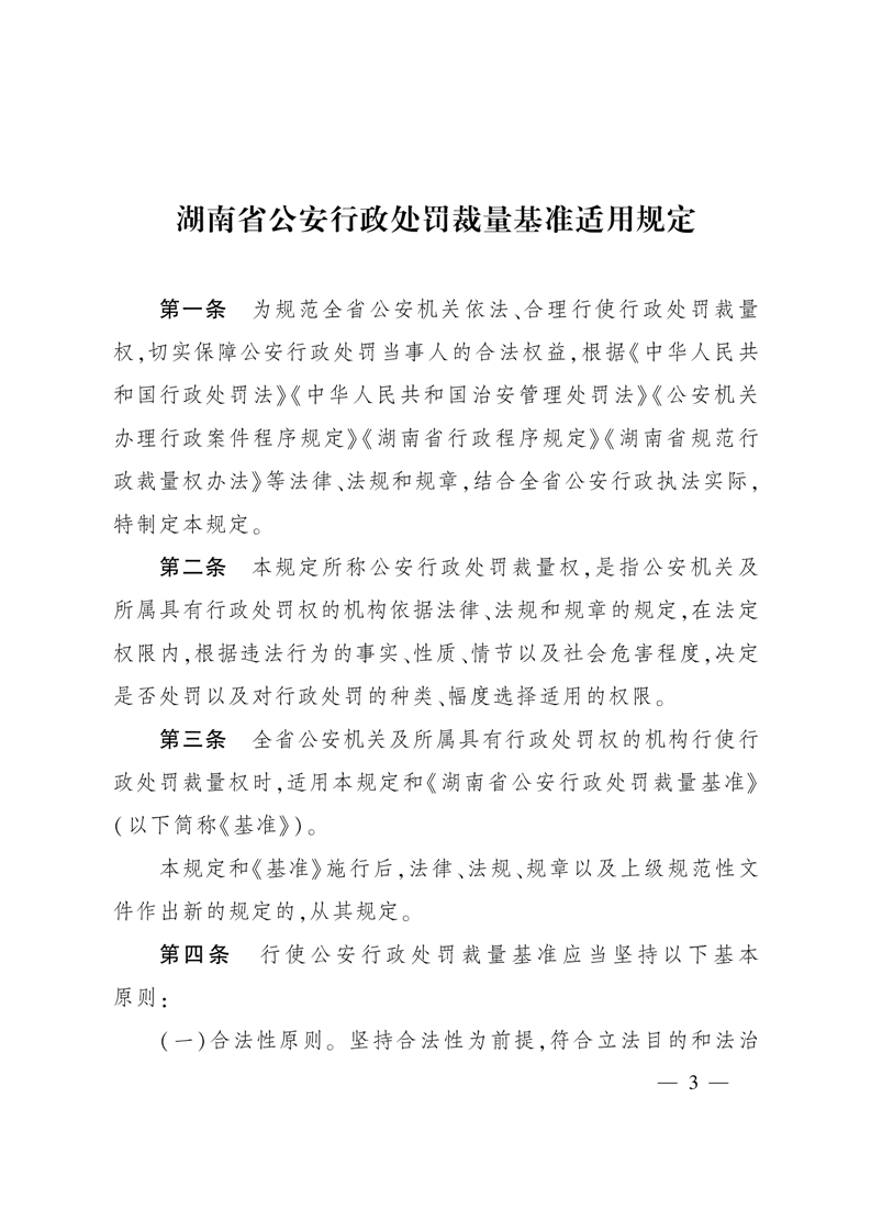 湖南省公安厅关于印发《湖南省公安行政处罚裁量基准适用规定》和《湖南省公安行政处罚裁量基准》的通知