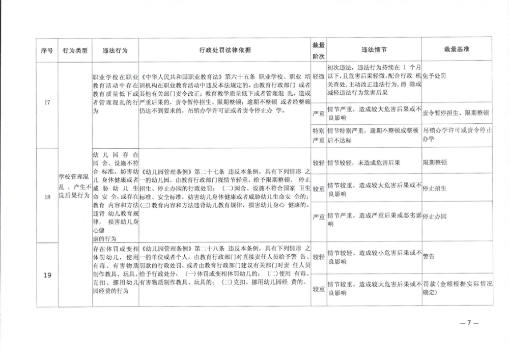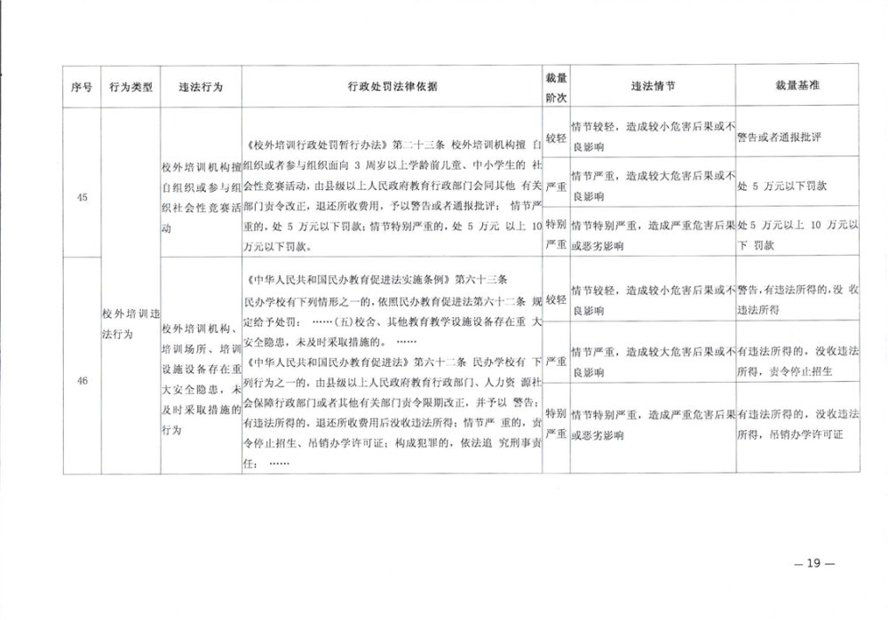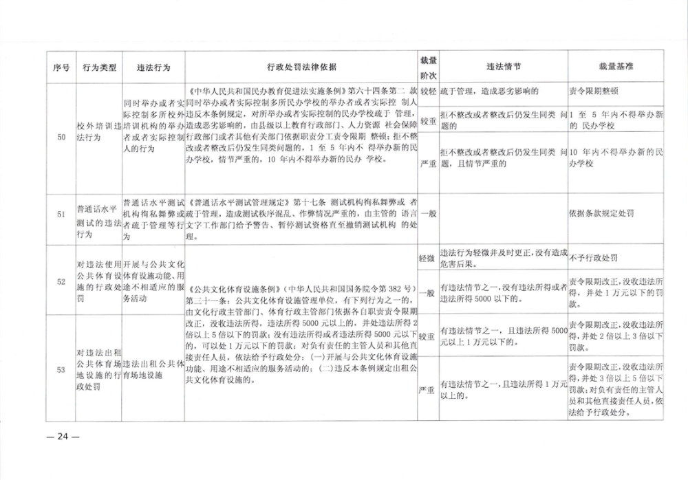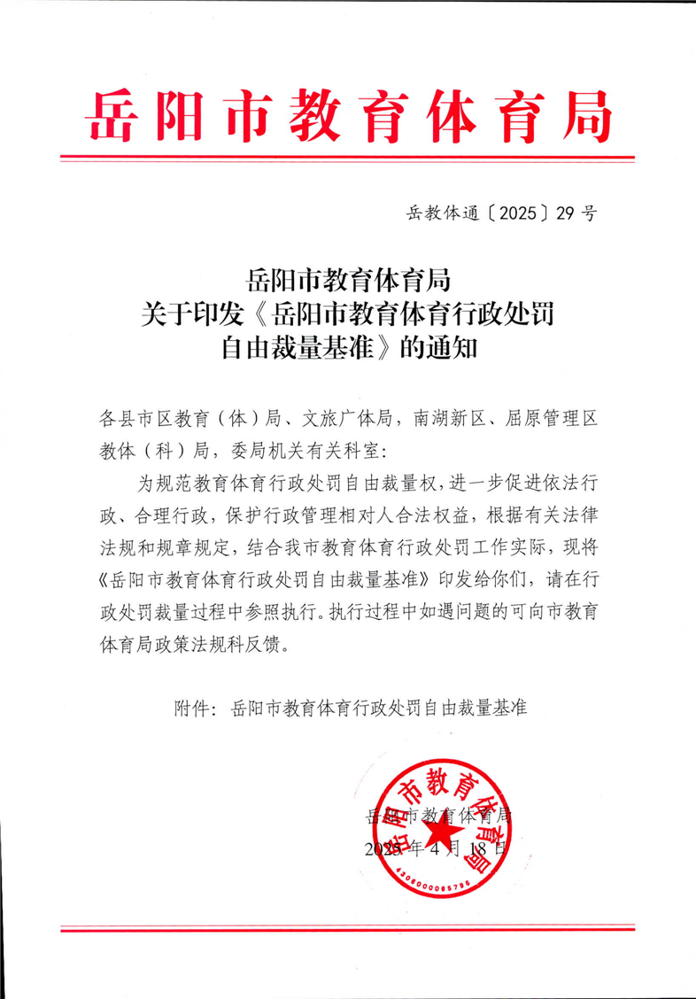 关于印发《市教育体育行政处罚自由裁量基准》的通知