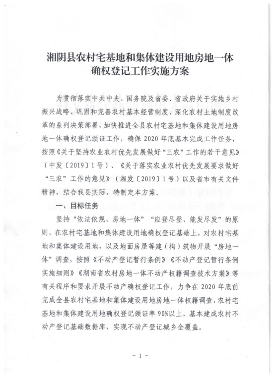 湘阴县农村宅基地和集体建设用地房地一体确权登记工作实施方案