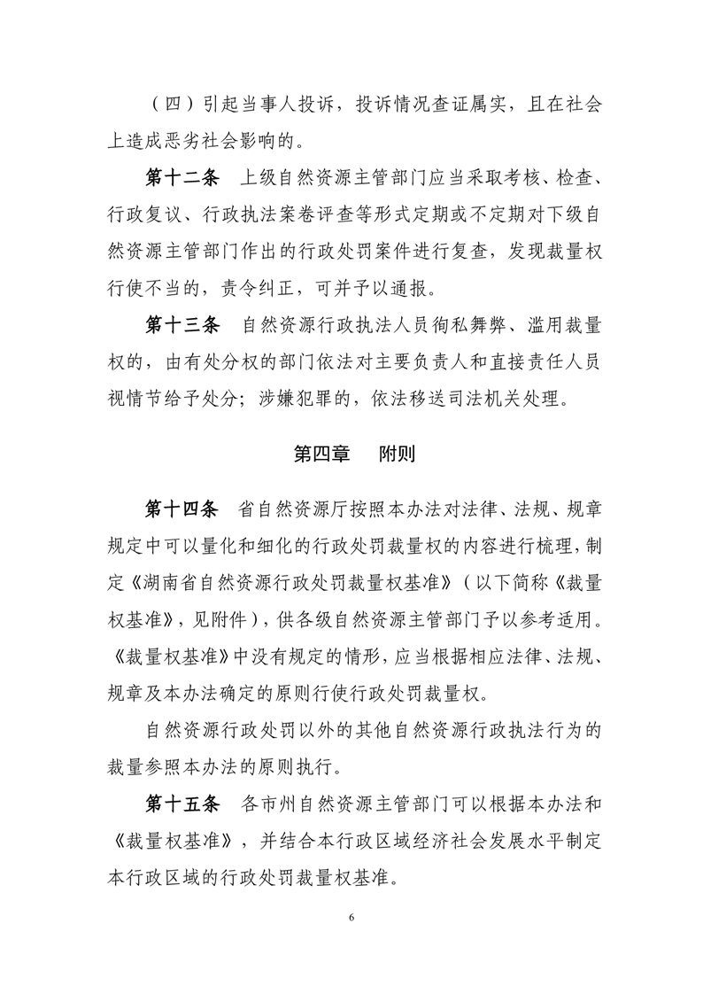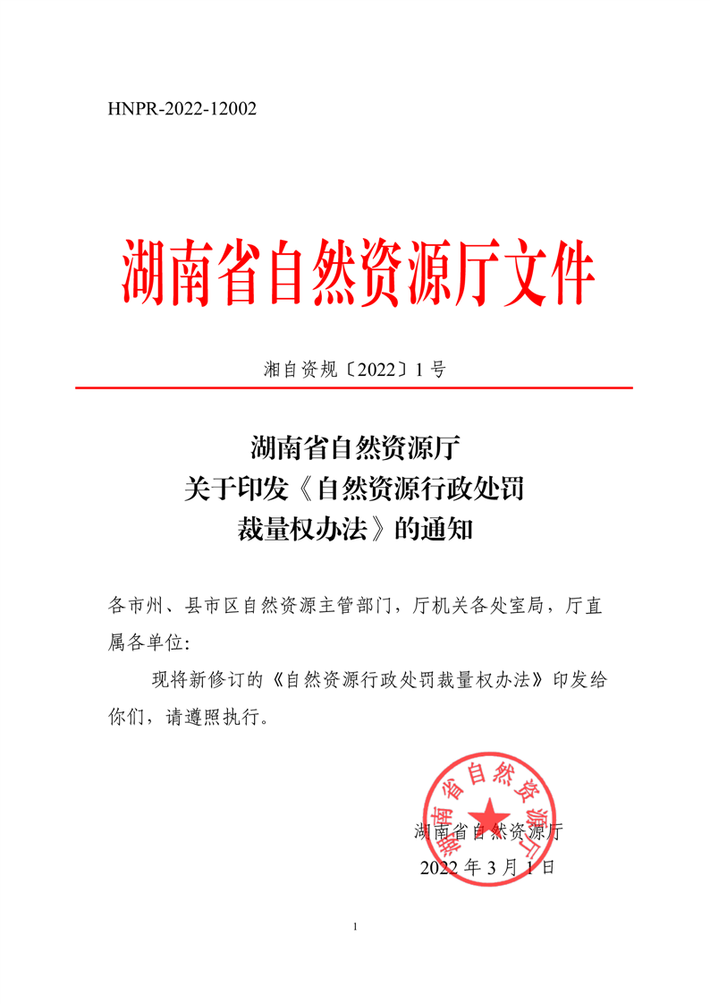 湖南省自然资源厅关于印发《自然资源行政处罚裁量权办法》的通知