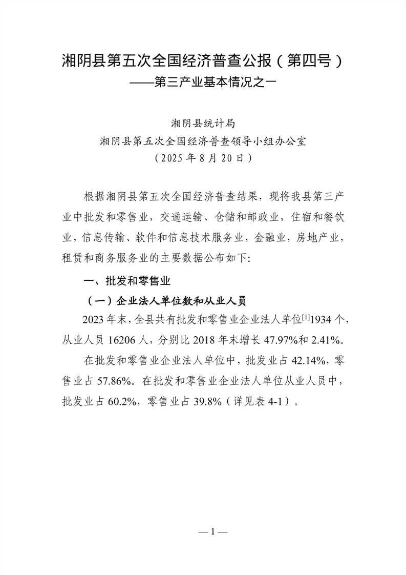 湘阴县第五次全国经济普查公报(第四号)