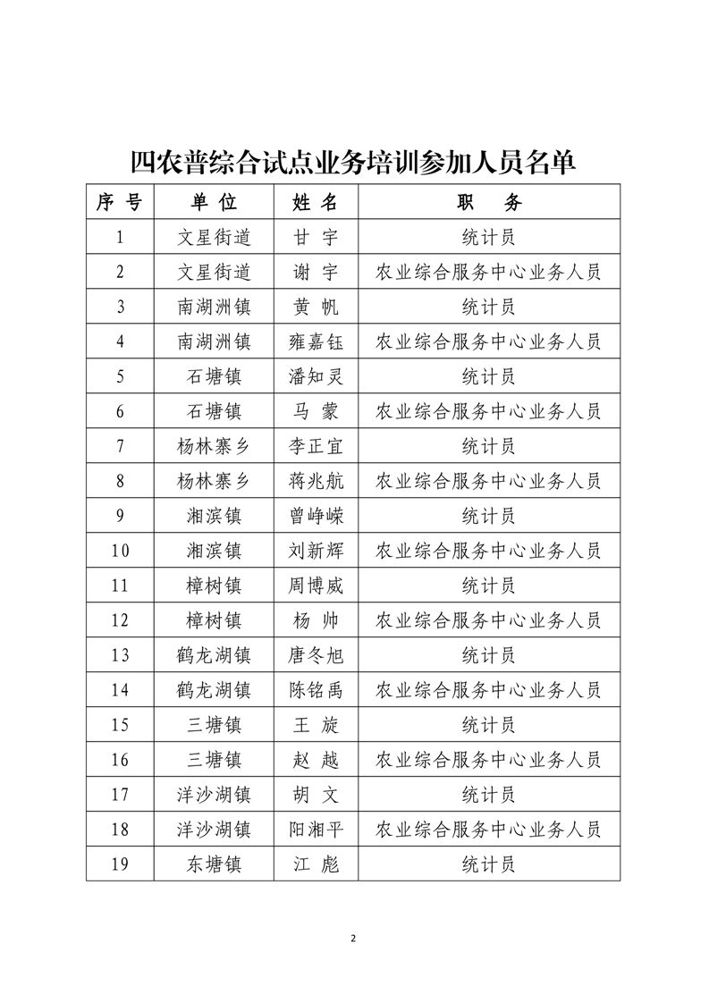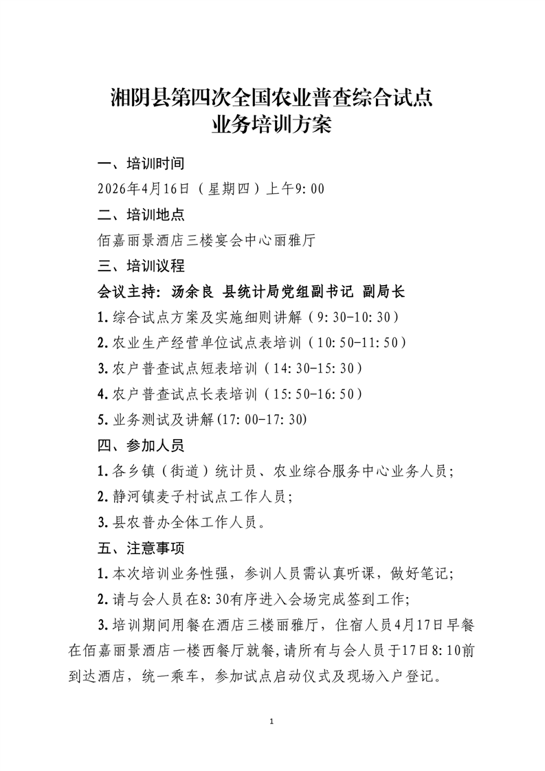 湘阴县第四次全国农业普查综合试点业务培训方案