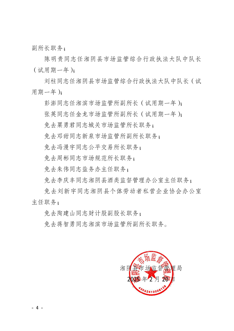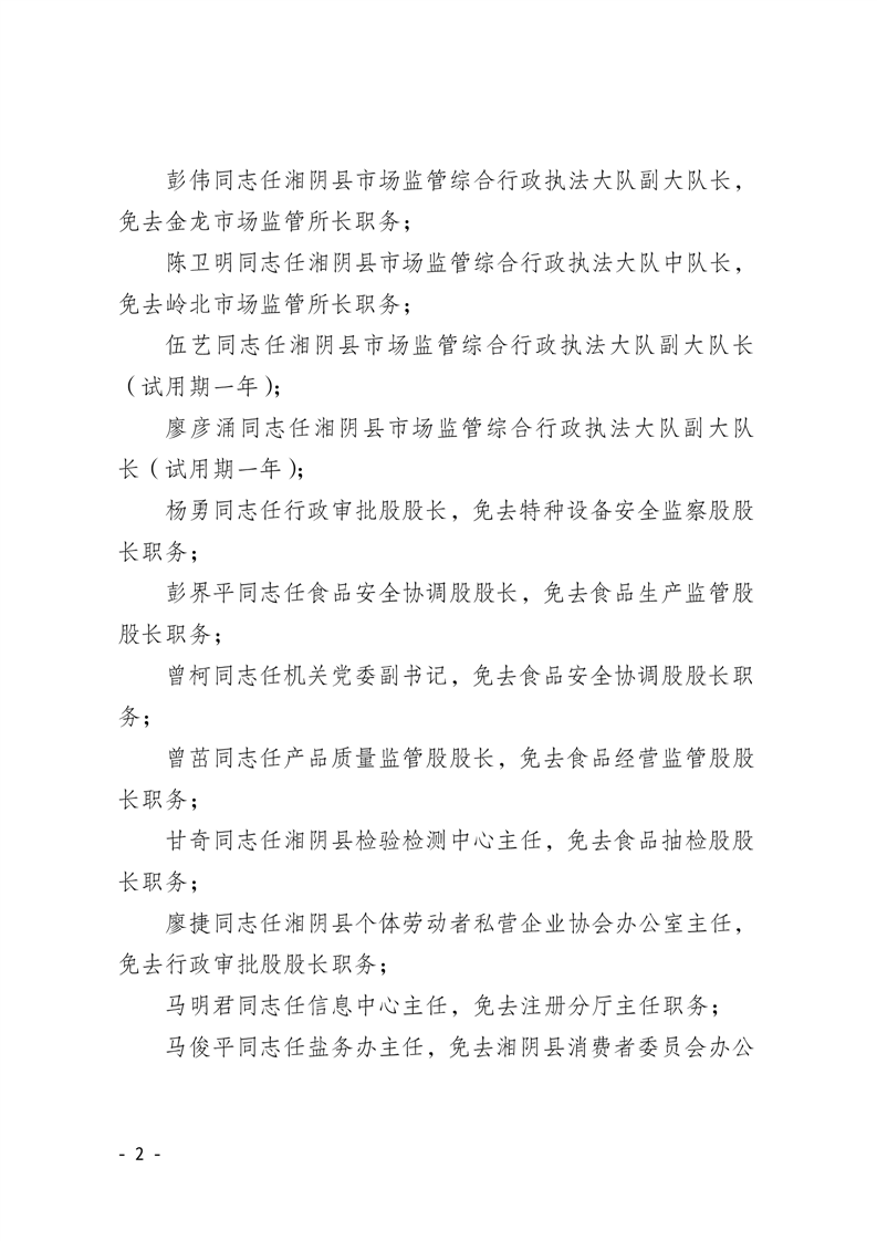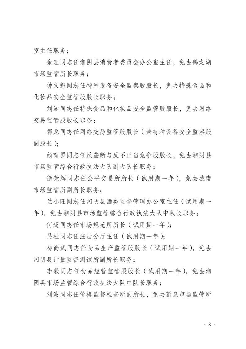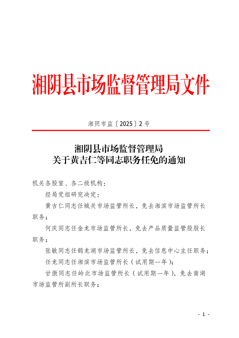 湘阴县市场监督管理局关于黄吉仁等同志职务任免的通知
