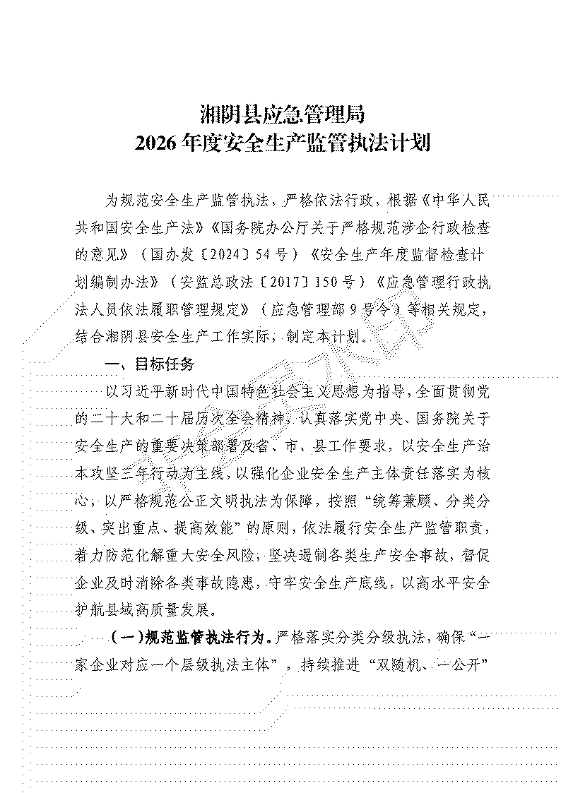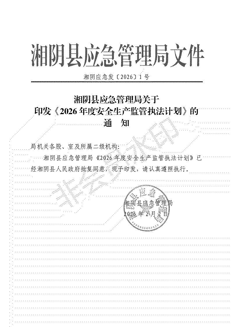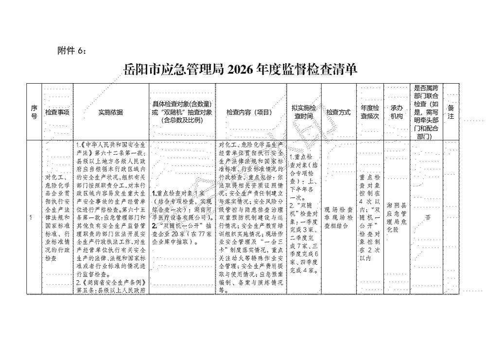 湘阴县应急局2026年度安全生产监督检查计划