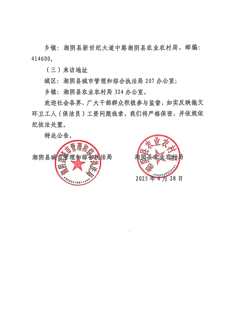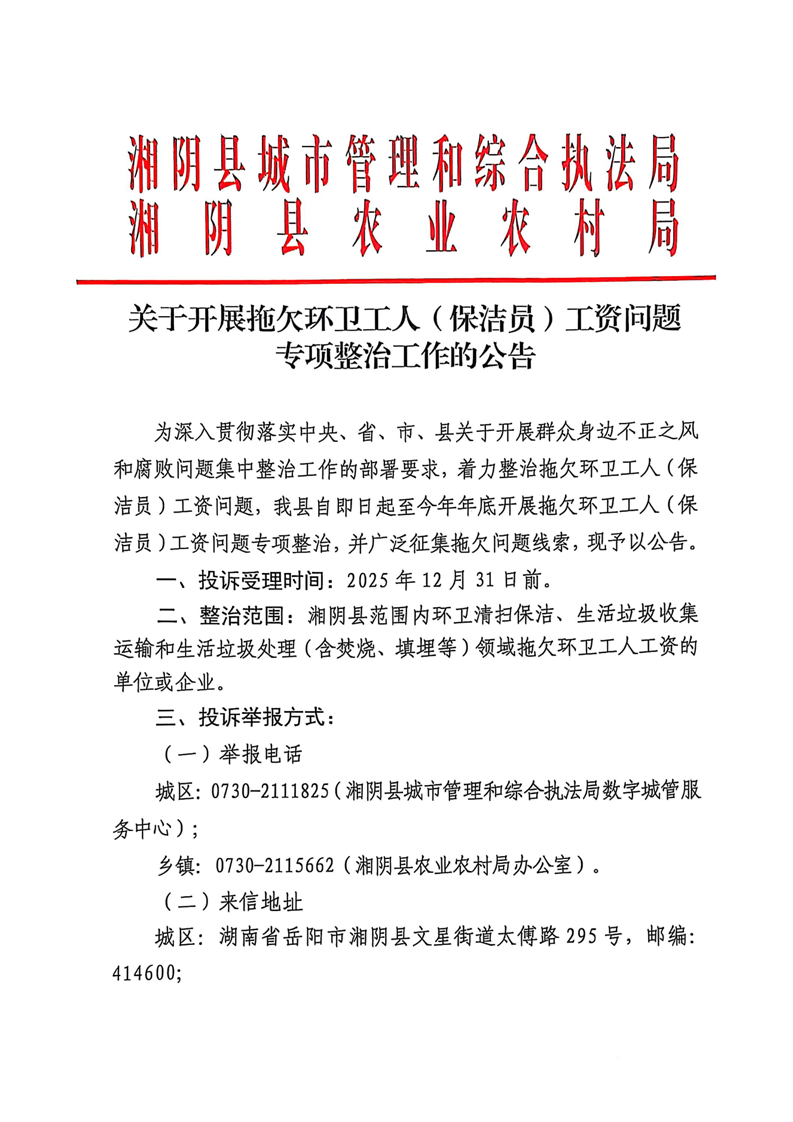 关于开展拖欠环卫工人(保洁员)工资问题专项整治工作的公告