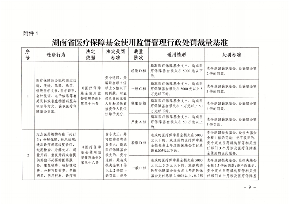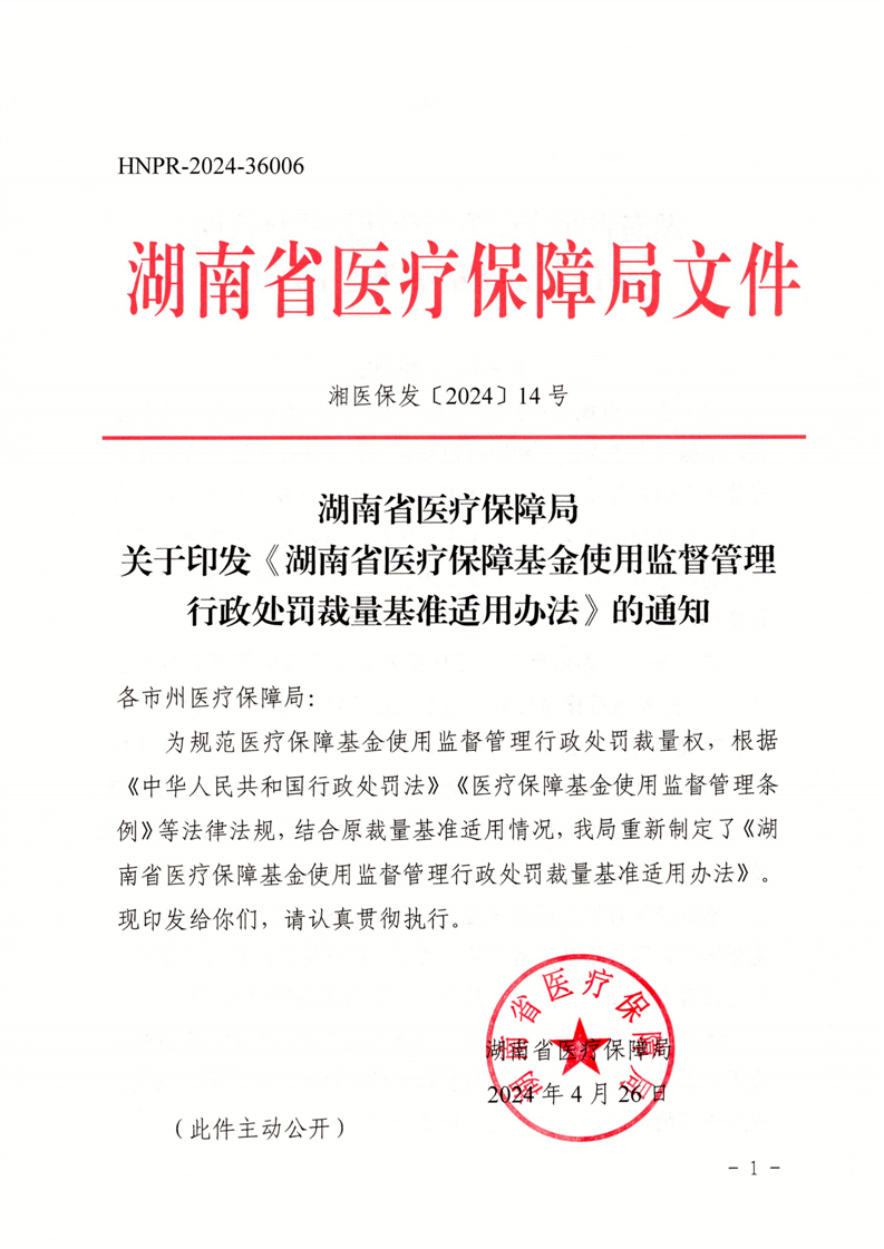 关于转发《湖南省医疗保障基金使用监督管理行政处罚裁量基准适用办法》的通知