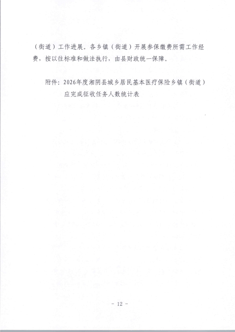 关于印发《湘阴县2026年度城乡居民基本医疗保险参保缴费工作方案》的通知