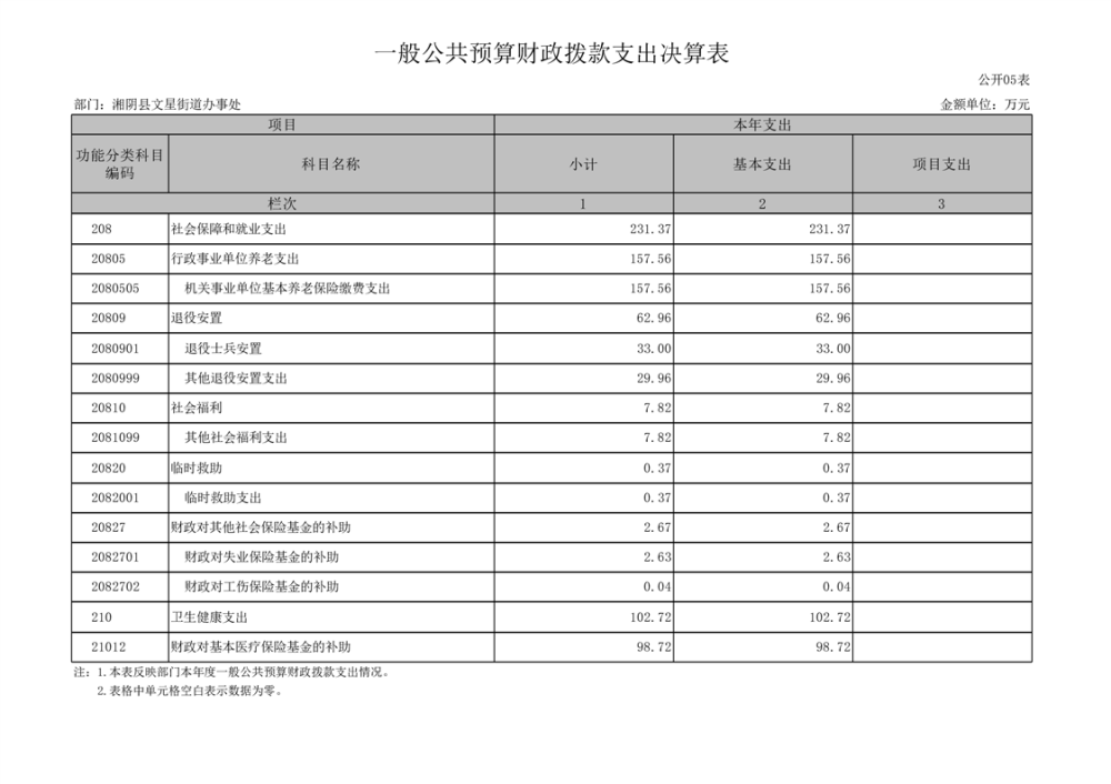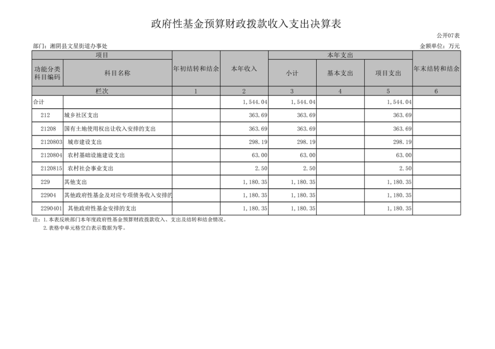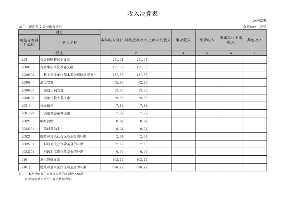 湘阴县文星街道办事处-2022年度-决算公开