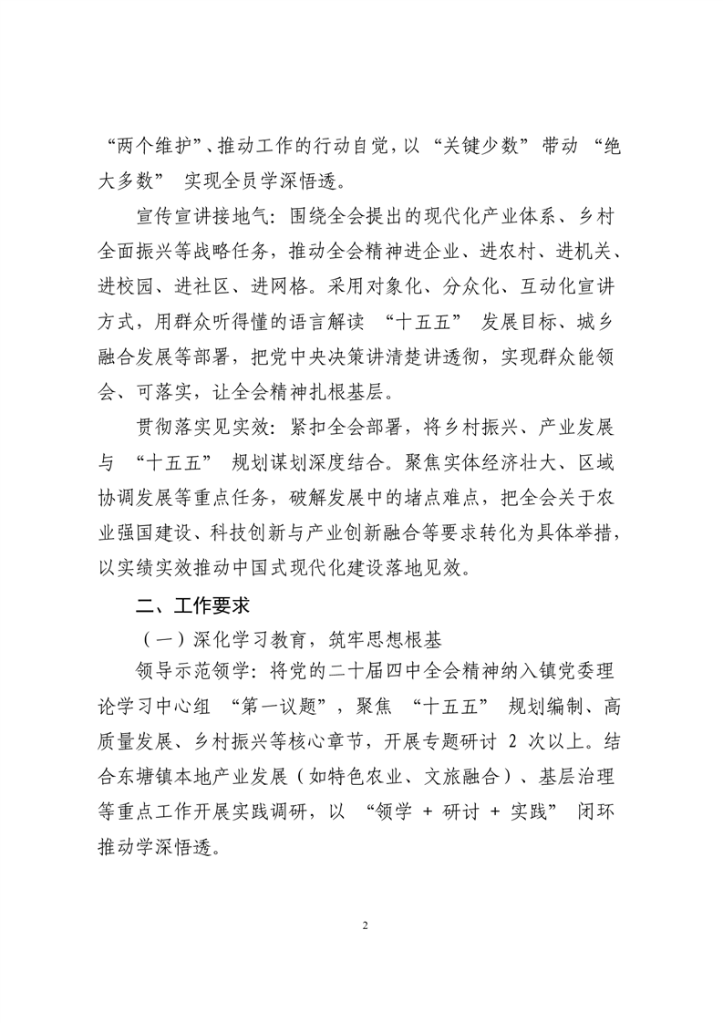 东塘镇学习宣传贯彻党的二十届四中全会精神工作方案