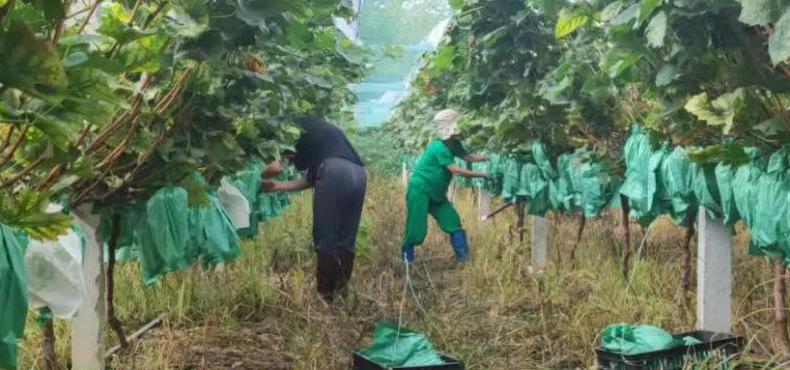 近日,在湘阴县东塘镇黄甲村葡萄园,葡萄大棚鳞次栉比,果农们正在忙着挑拣、封装、打包,将精选后的果实装箱,等待各地的订购商前来订购。