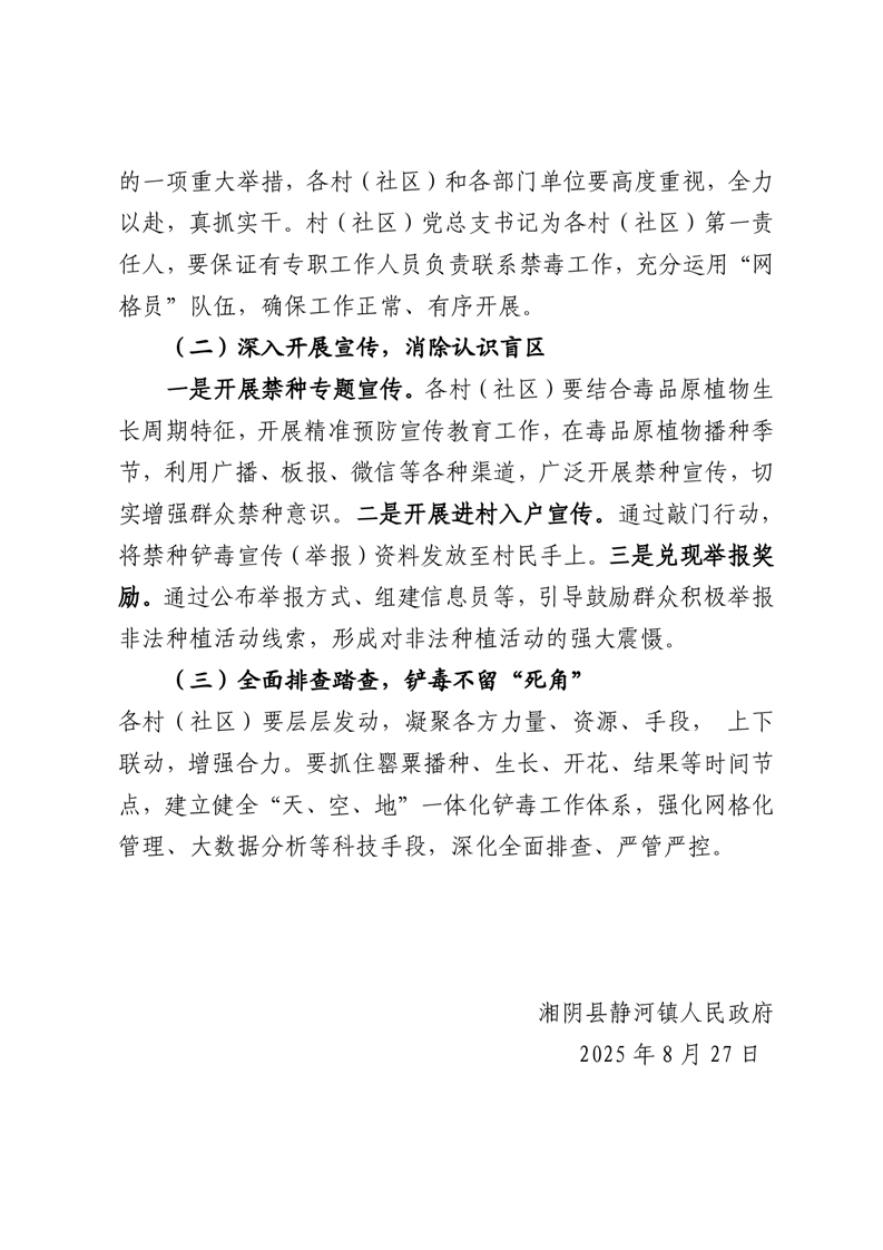 静河镇2025年禁种铲毒工作方案
