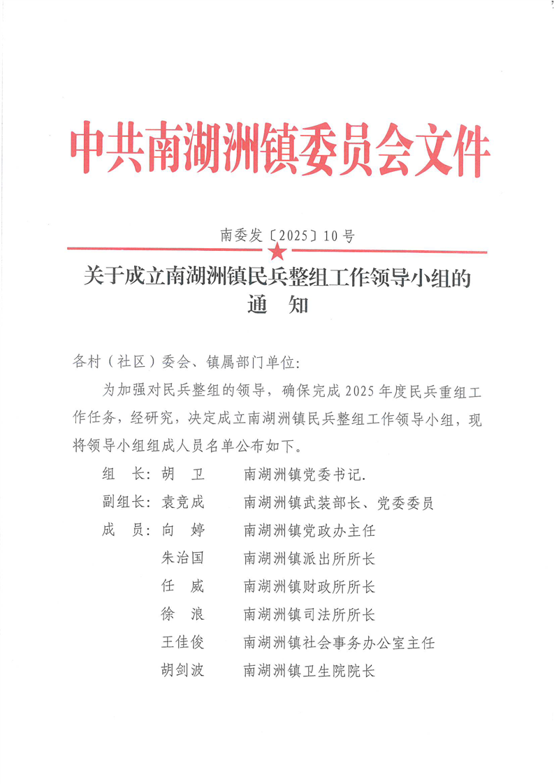 关于成立南湖洲镇民兵连长整改工作领导小组的通知
