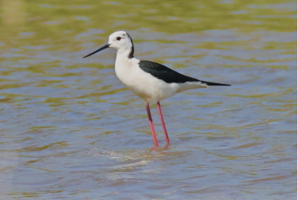图2:在水中栖息的黑翅长脚鹬,生性胆小地警惕四周。