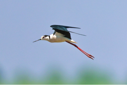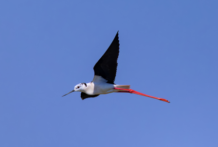 轻风乍起,三两只黑翅长脚鹬舒展纤长羽翼,顺着气流轻盈滑翔,划出一道灵动弧线。飞倦了便落回浅滩,抖抖羽毛继续凝望波光,如此往复。