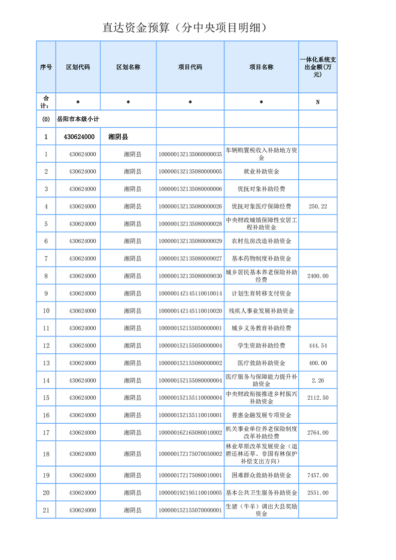 湘阴县2025年1-7月份直达基层资金支出情况表