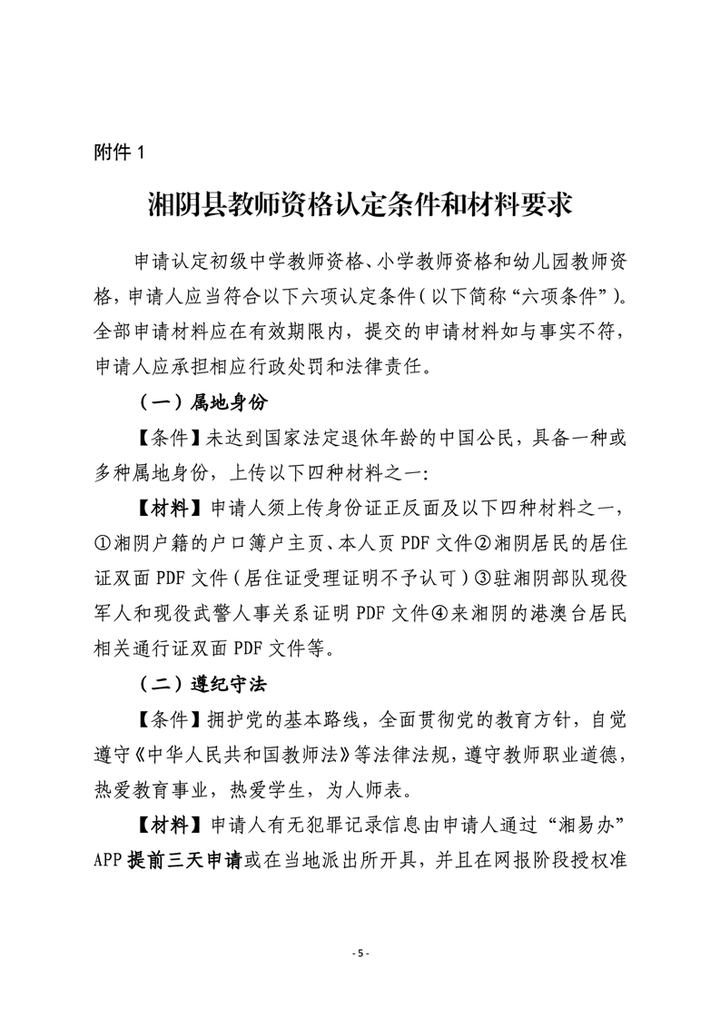 附件1湘阴县教师资格认定条件和材料要求.wps