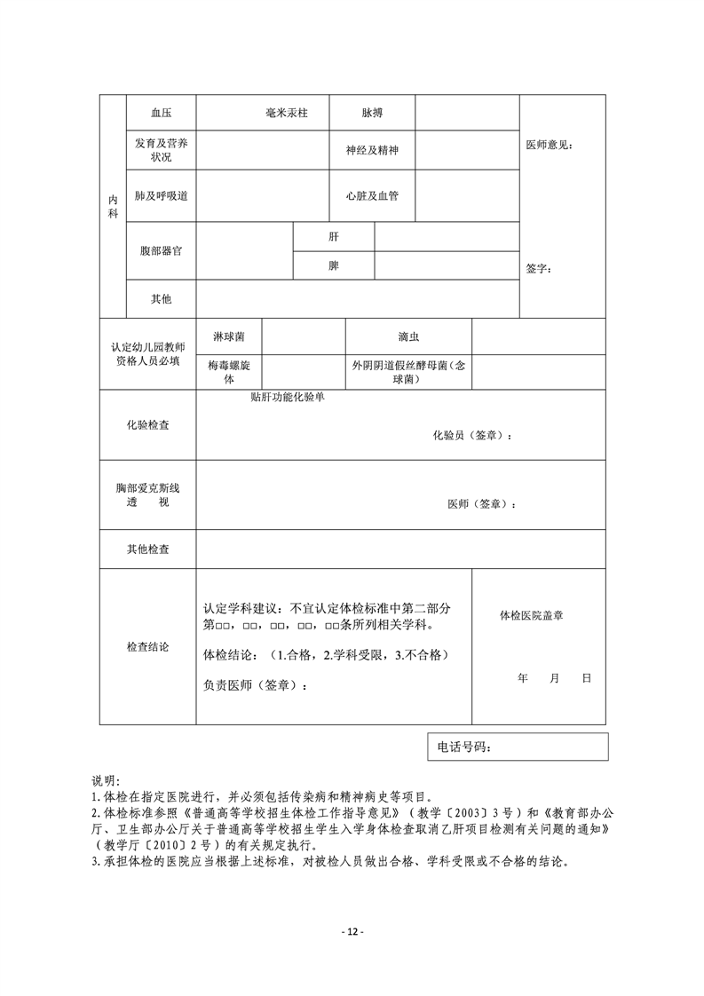 附件3湖南省教师资格认定体检表.docx