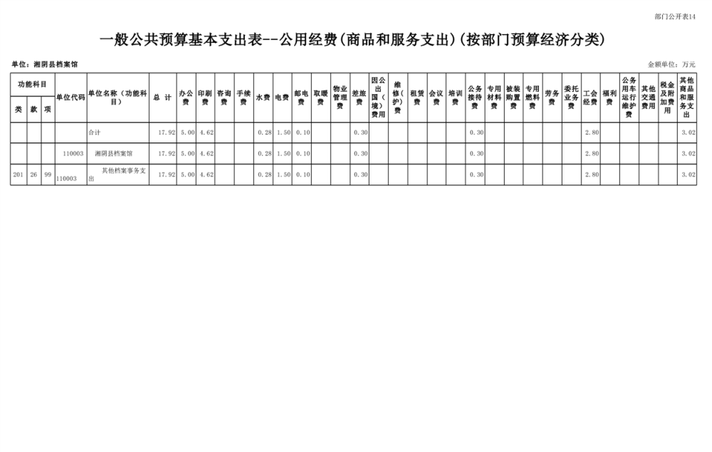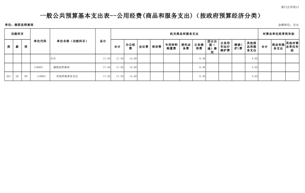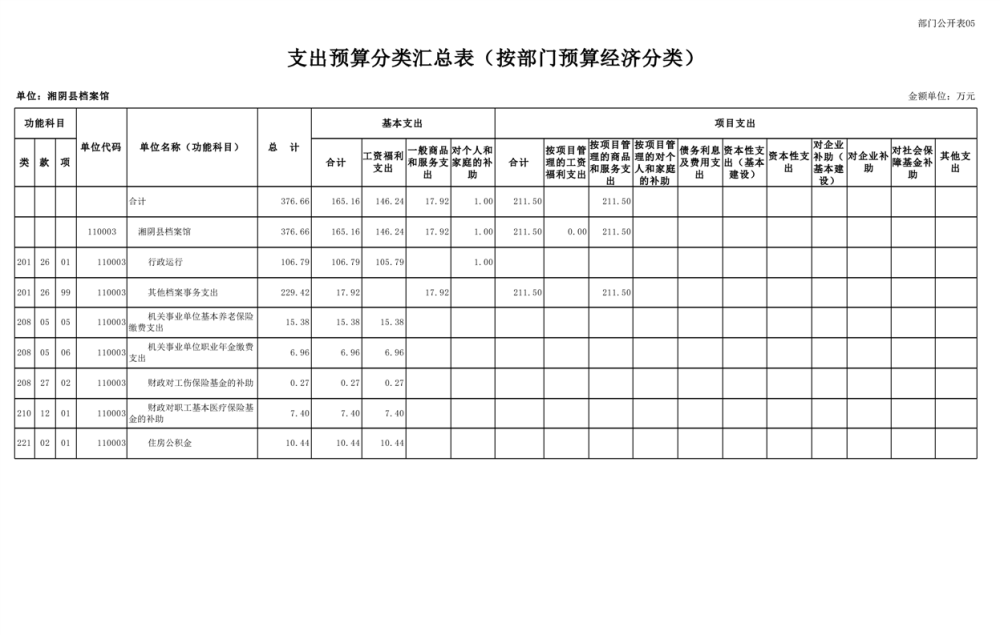 湘阴县档案馆-2025年-预算公开