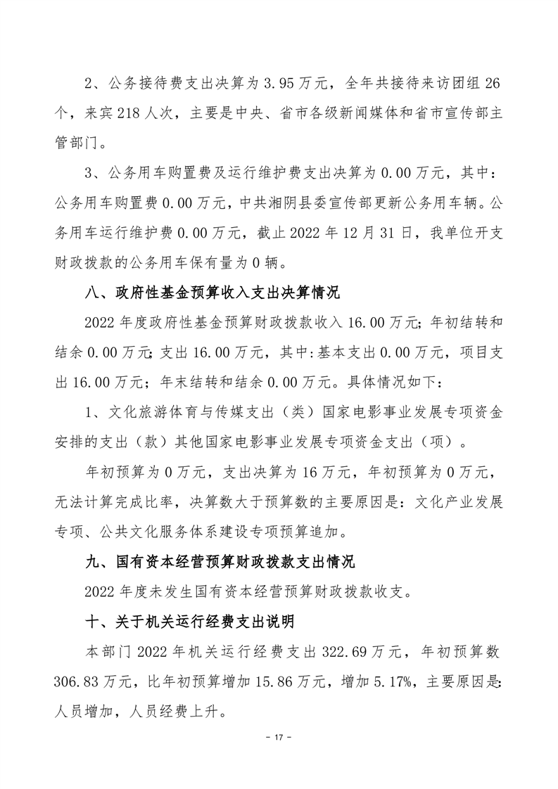 中共湘阴县委宣传部-2022年度-决算公开