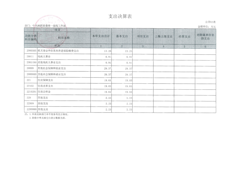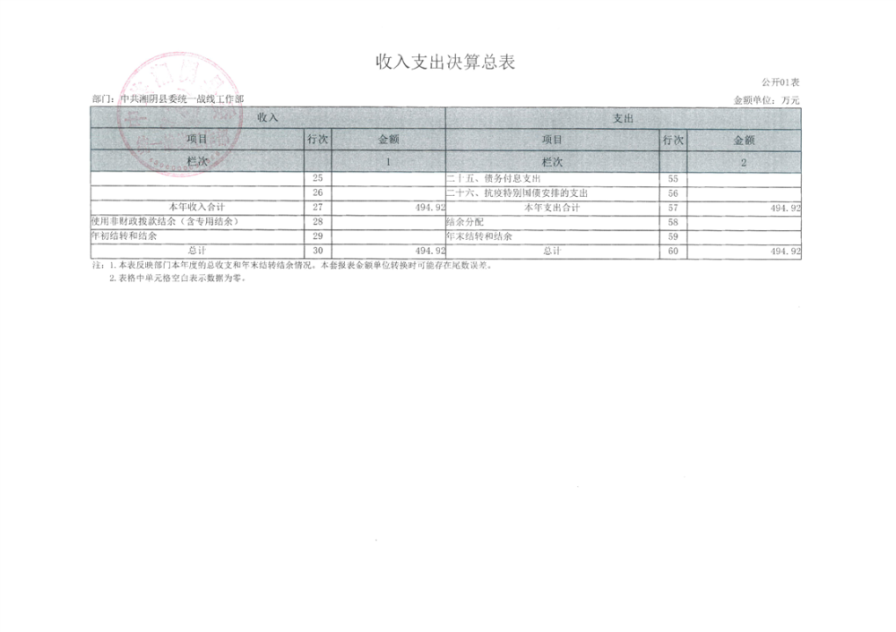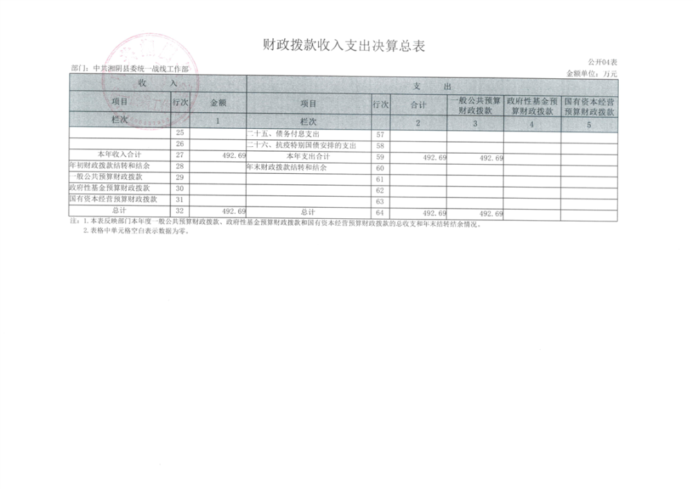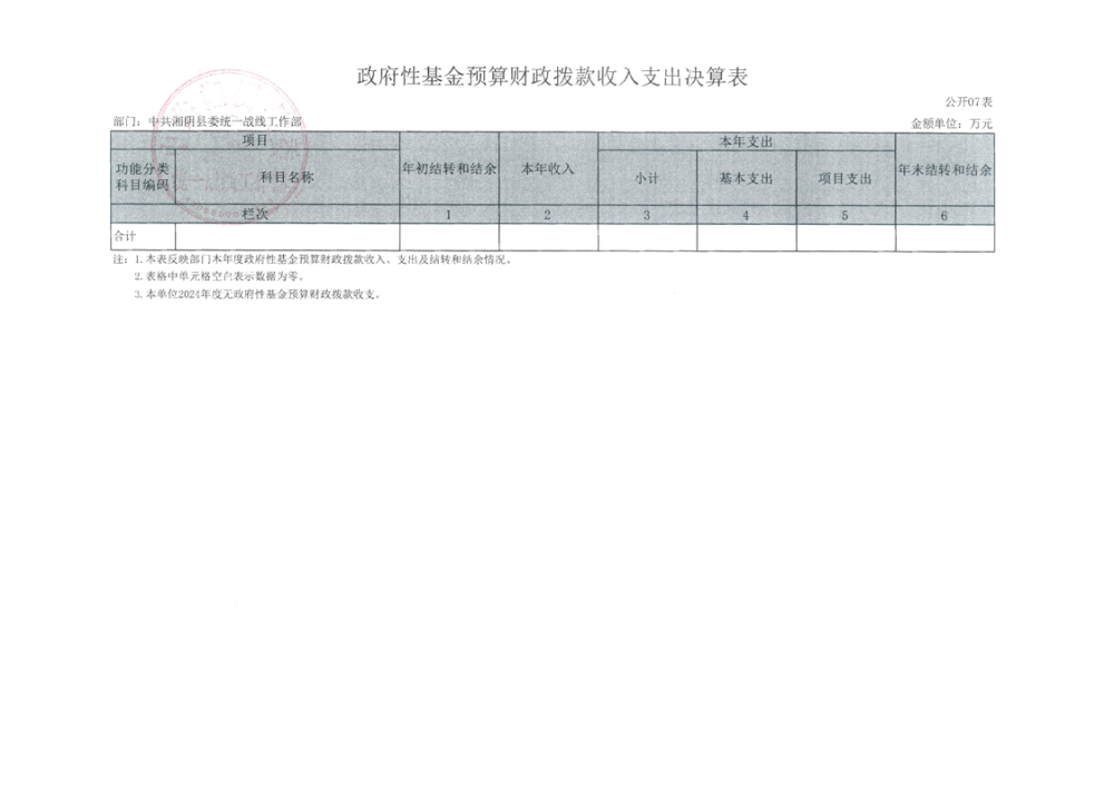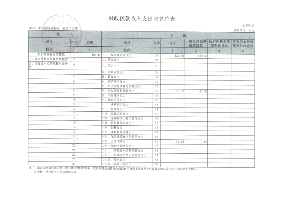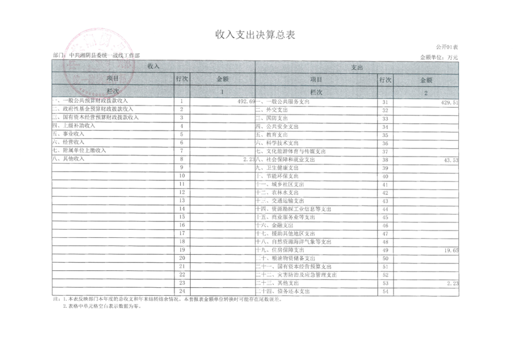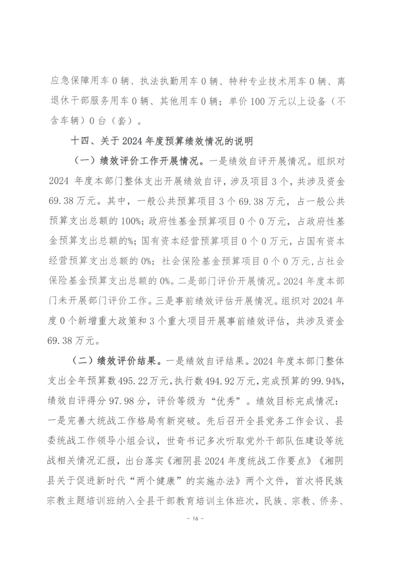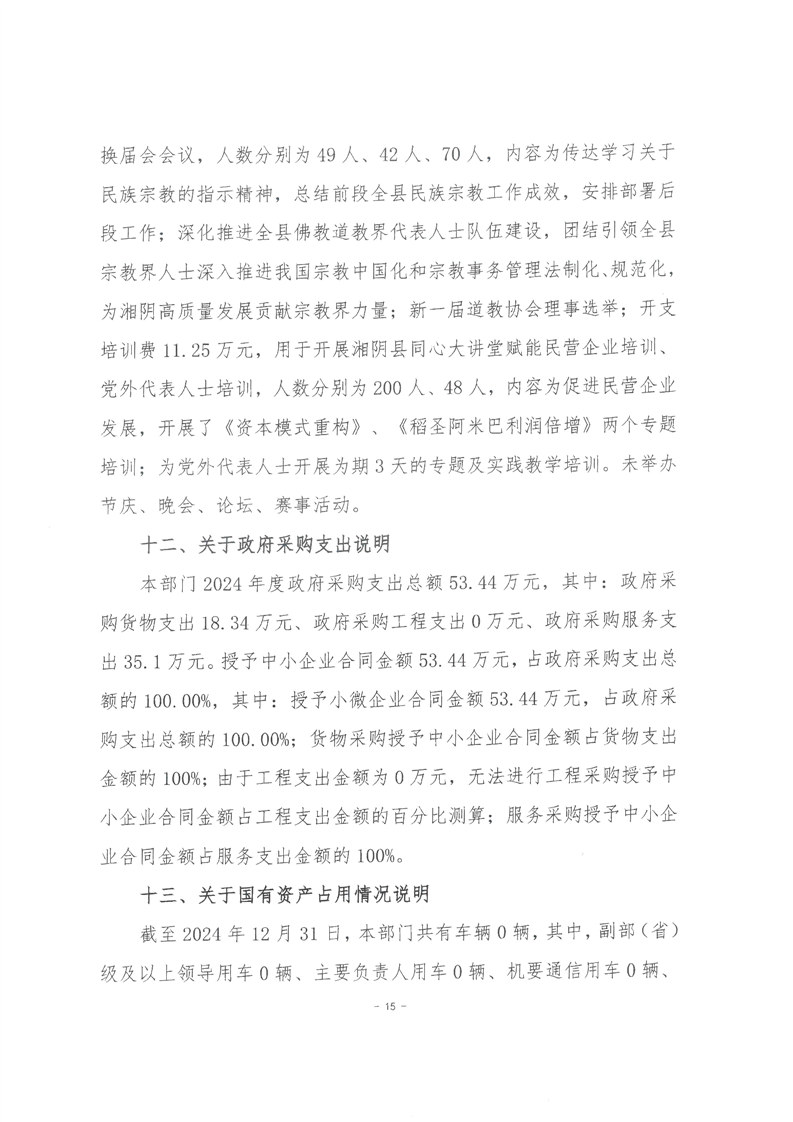 2024年度--湘阴县委统一战线工作部--决算公开