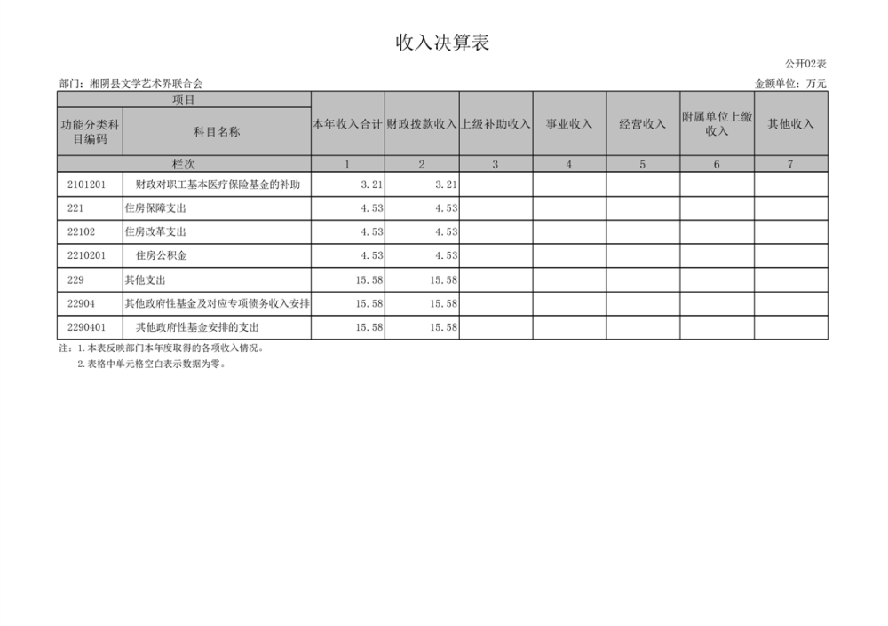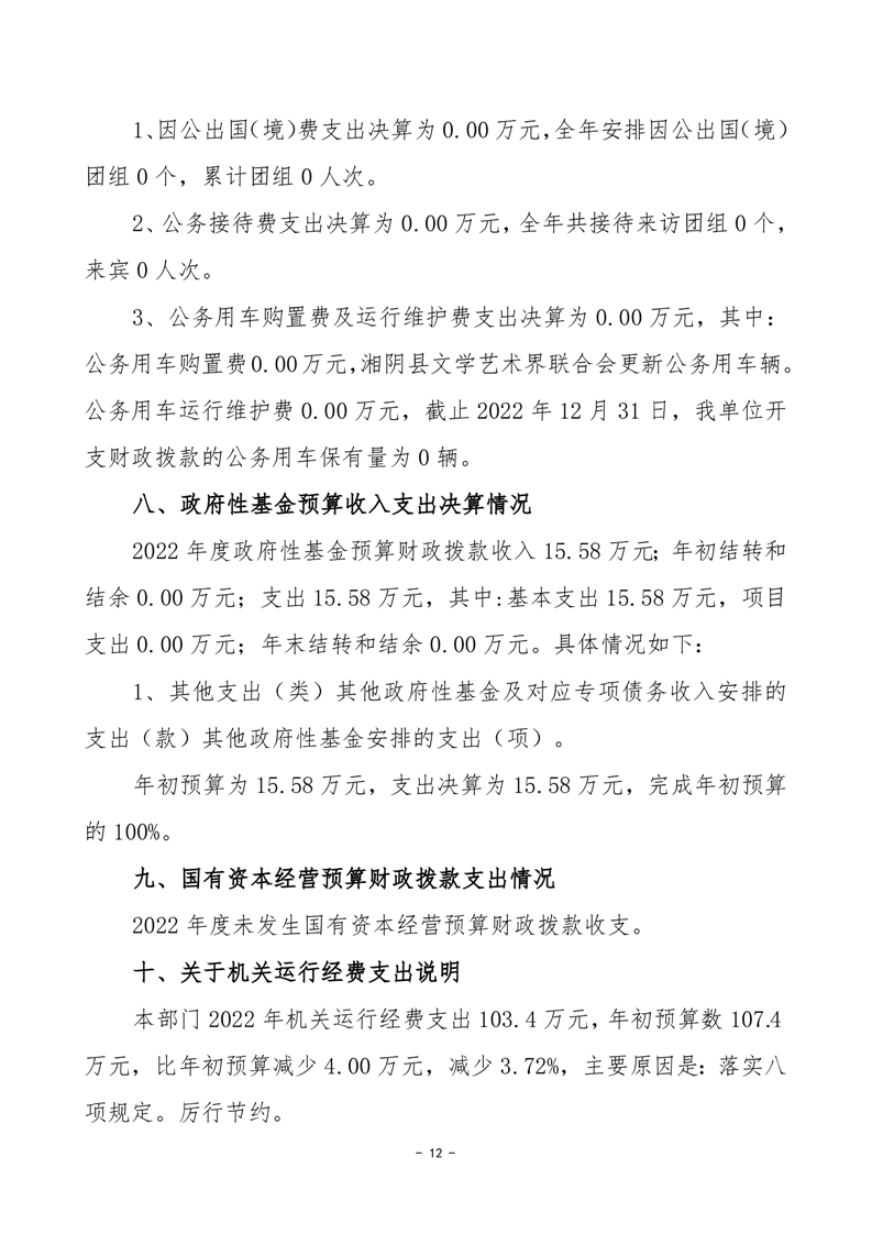 湘阴县文学艺术界联合会-2022年度-决算公开