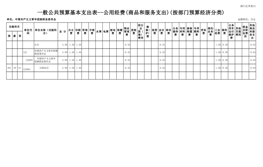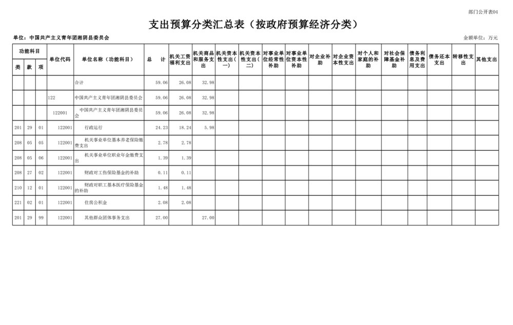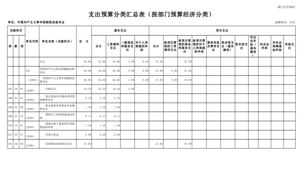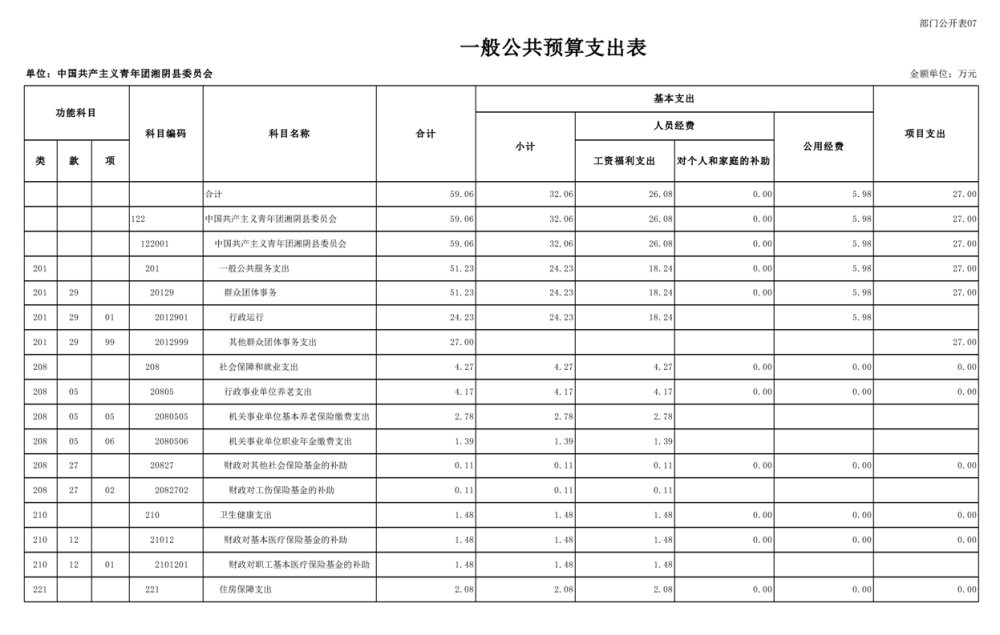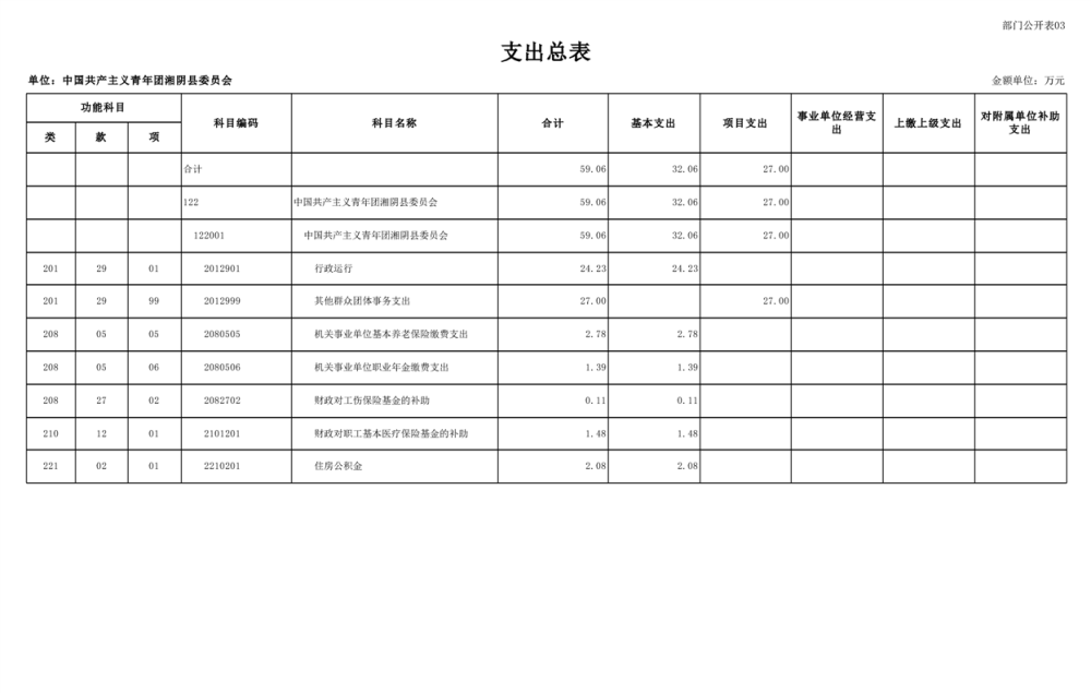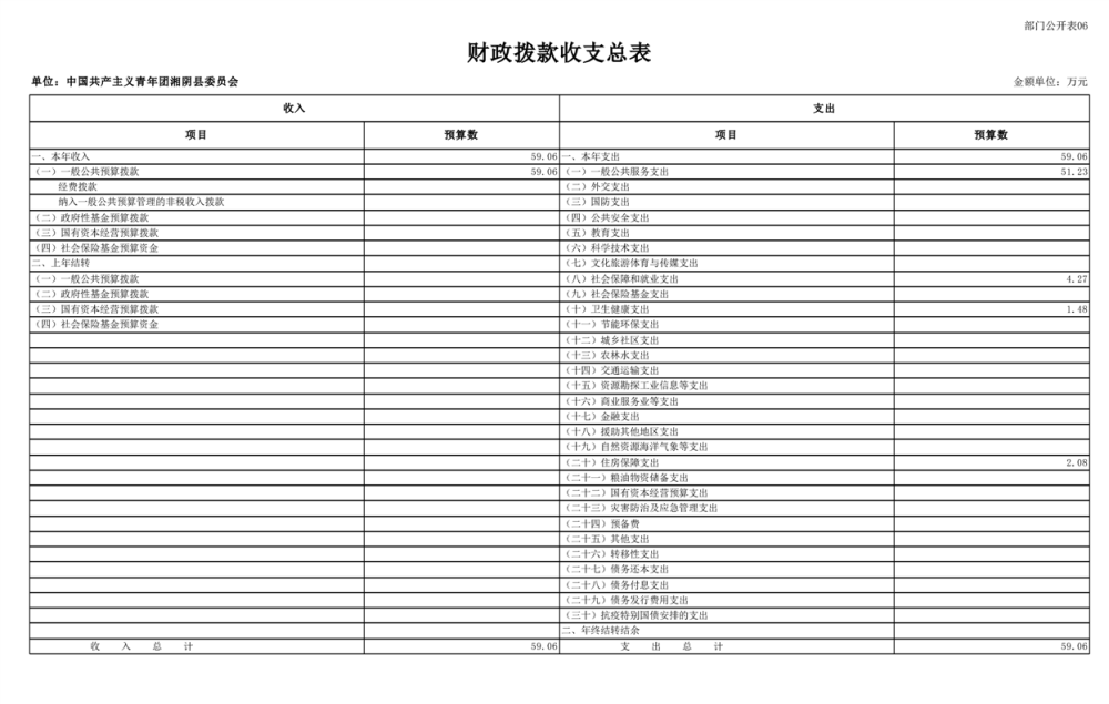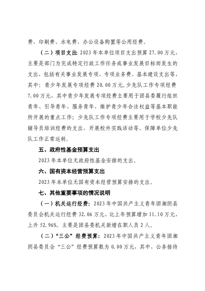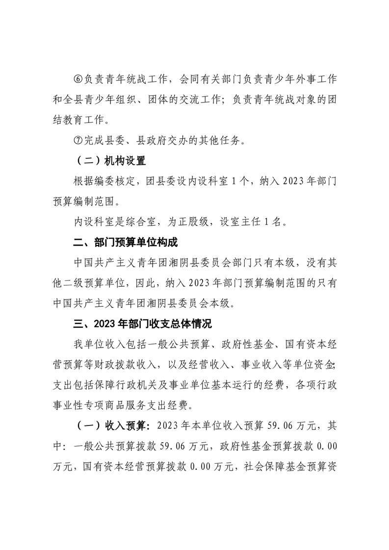中国共产主义青年团湘阴县委员会-2023 年-部门预算