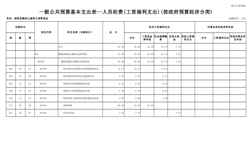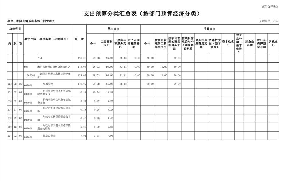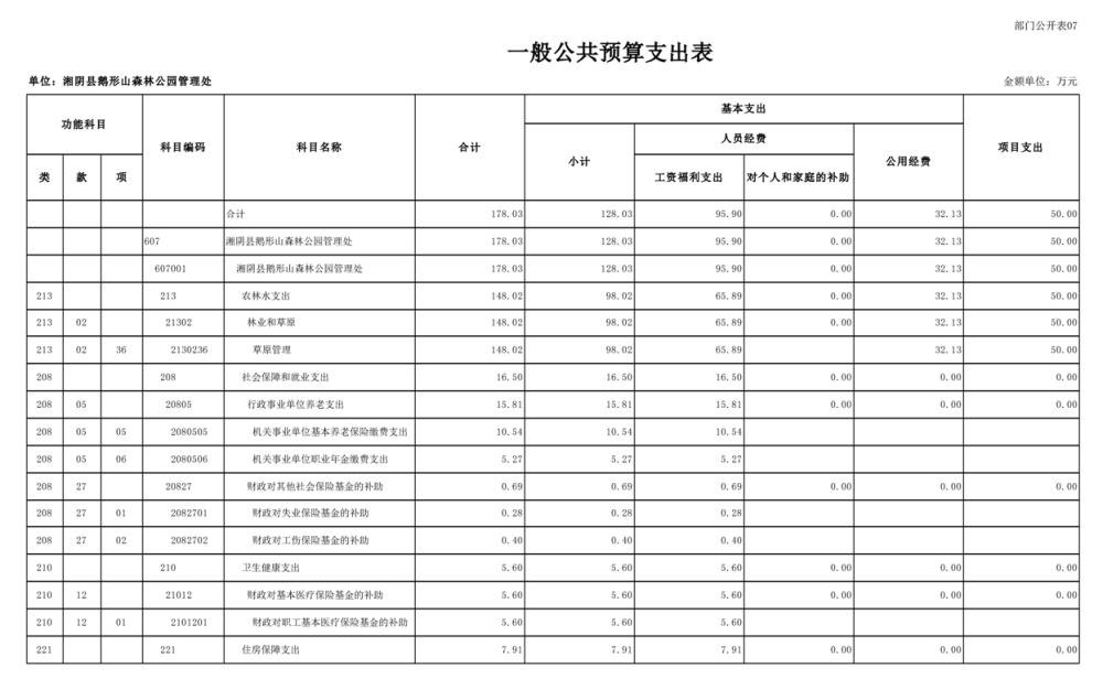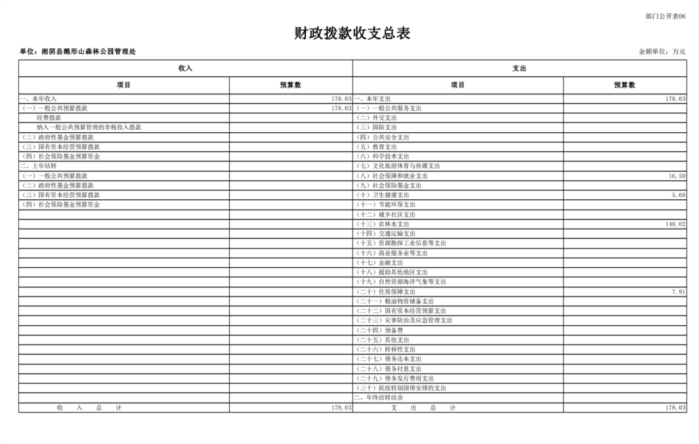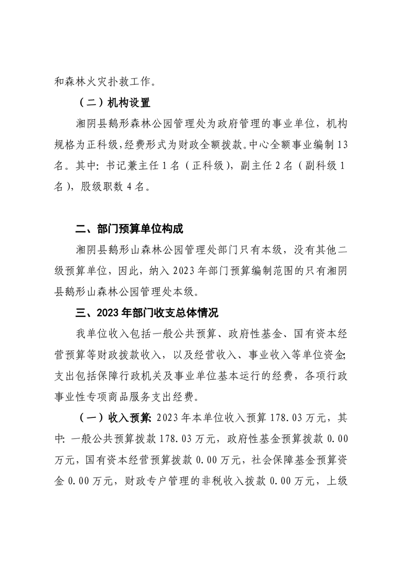 2023年-湘阴县鹅形山森林公园管理处-部门预算公开