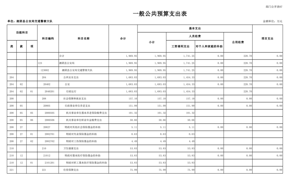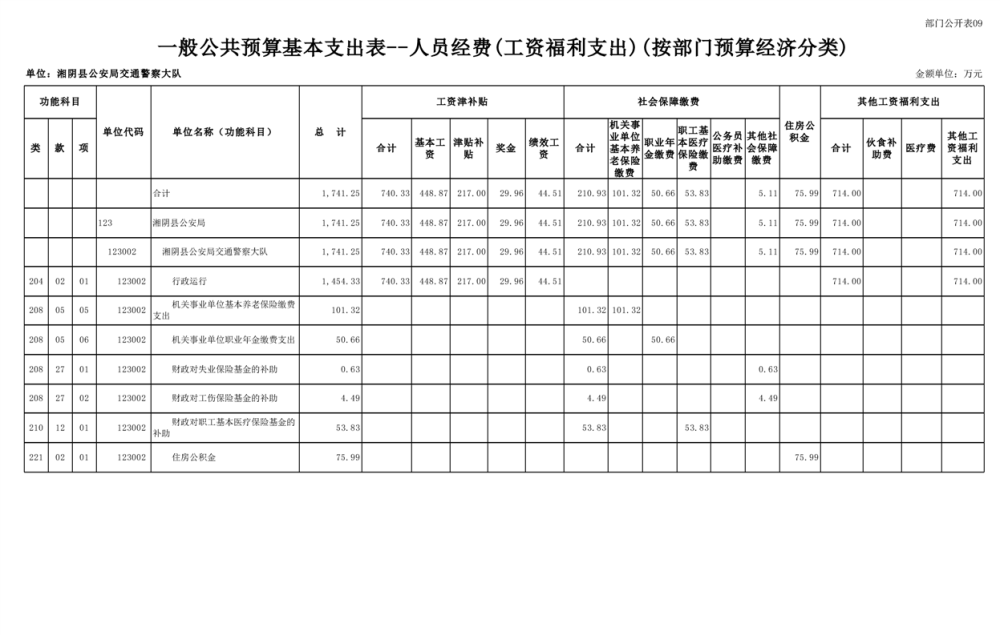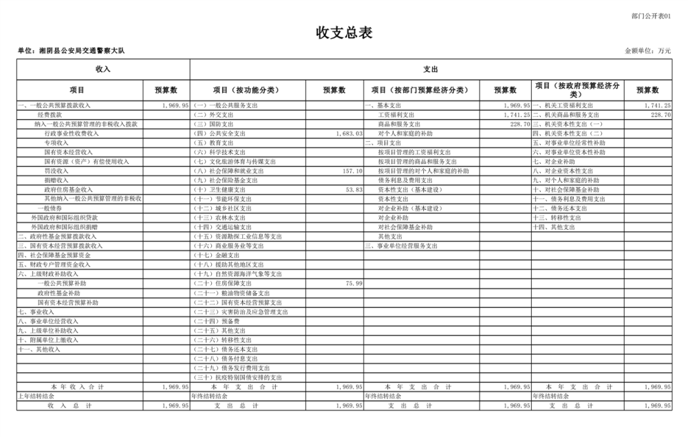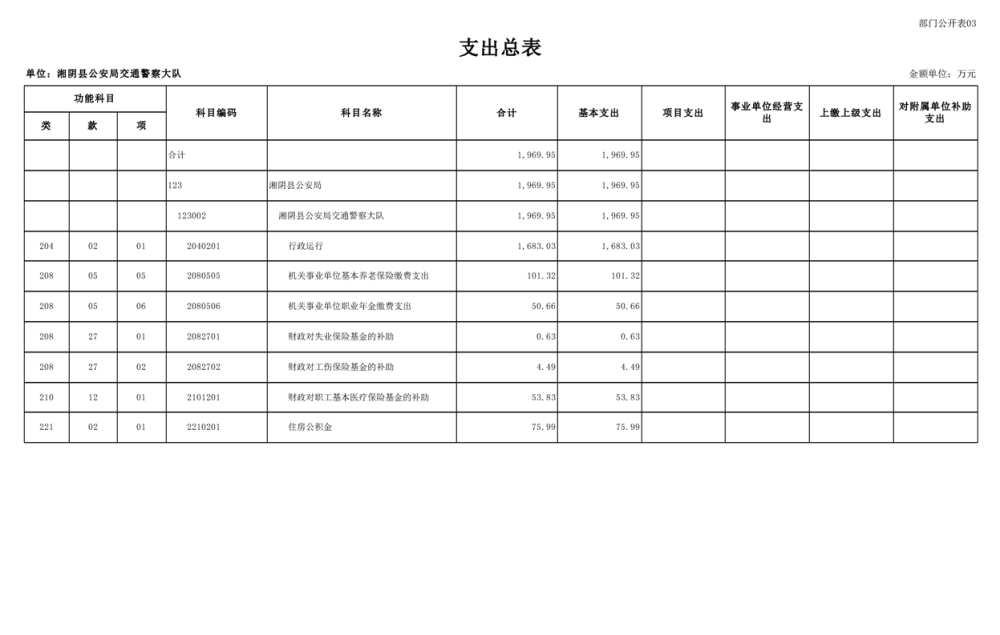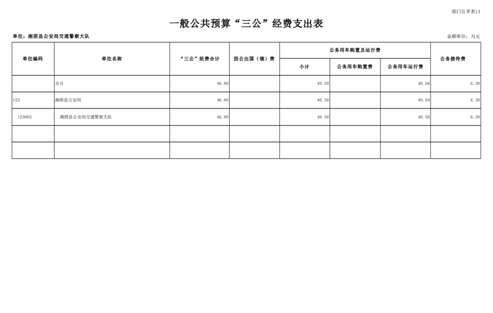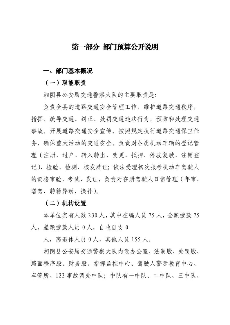湘阴县公安局交通警察大队-2023年-部门预算公开
