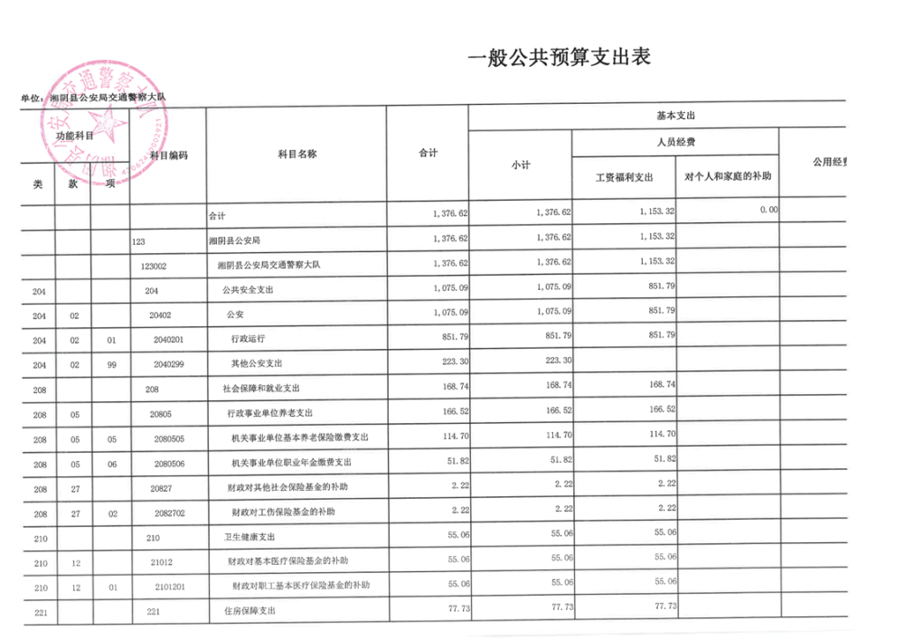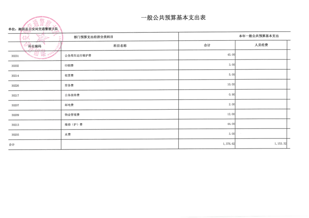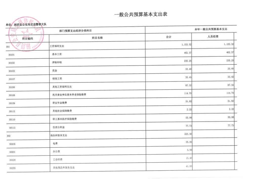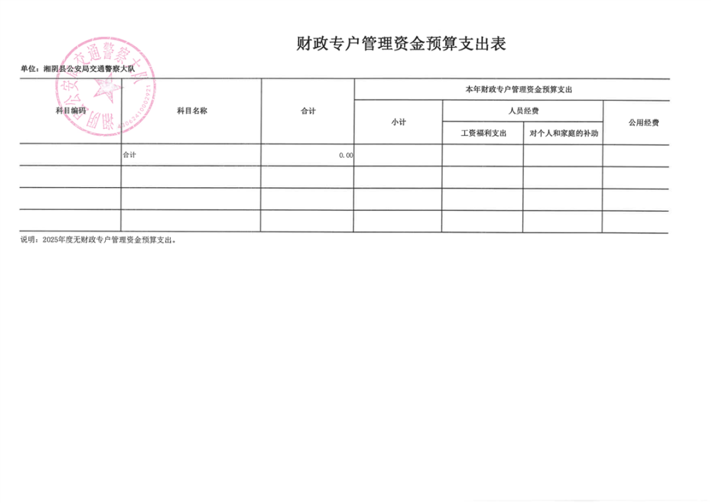 2025年-湘阴县公安局交通警察大队-部门预算公开