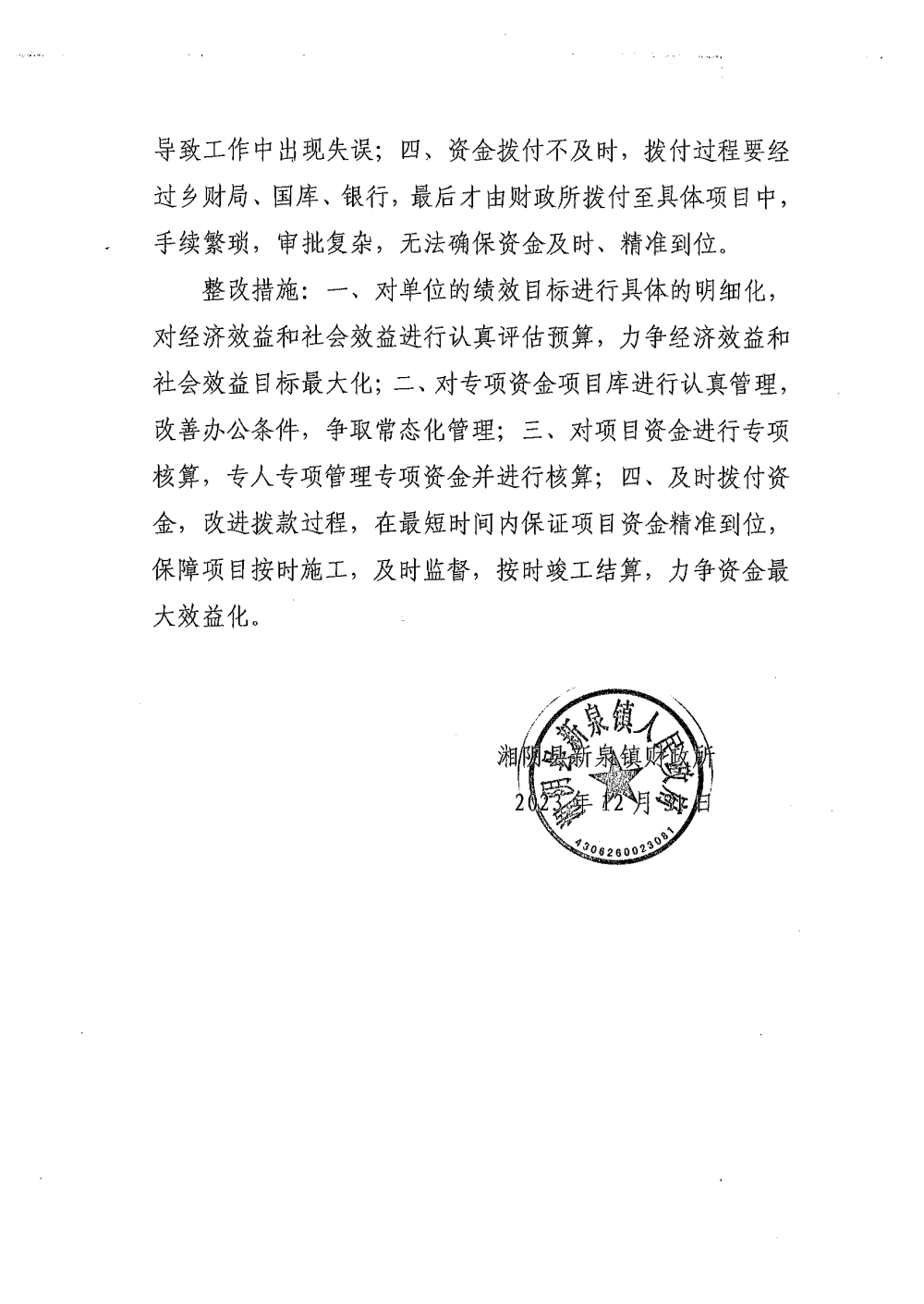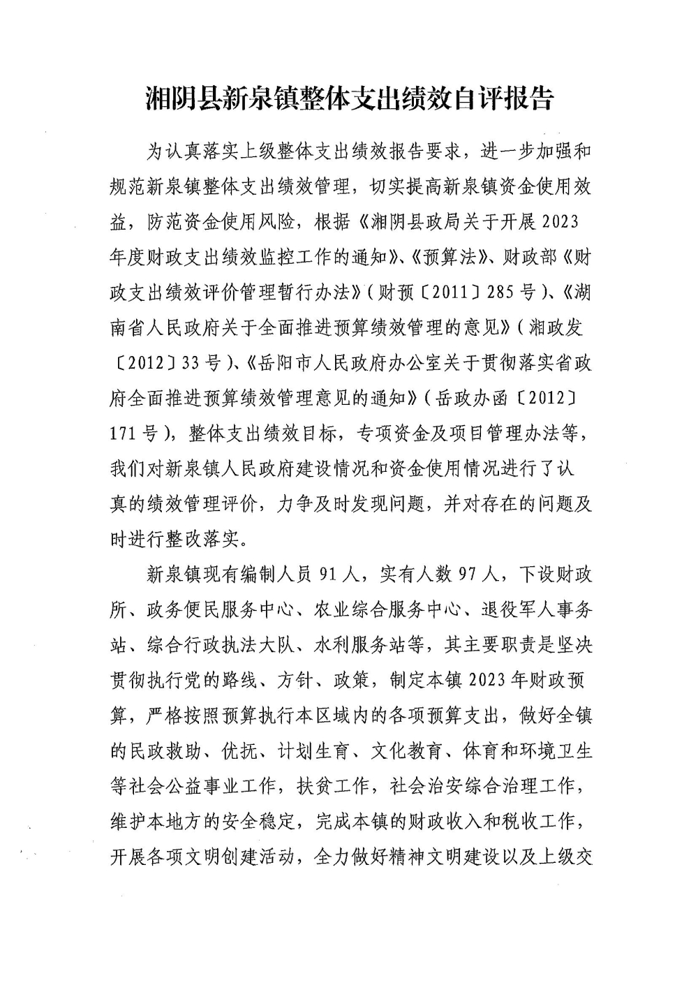 2023年-湘阴县新泉镇人民政府-财政预算资金绩效自评公开