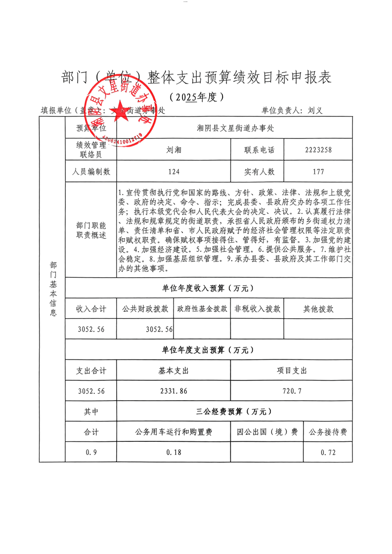 2025年-文星街道办事处-整体支出预算绩效目标申报表