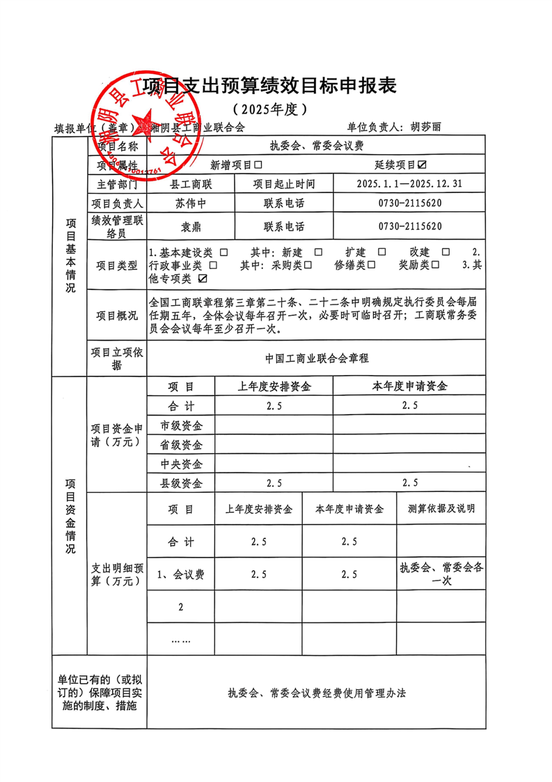 2025年度-湘阴县工商业联合会-整体及项目绩效申报表