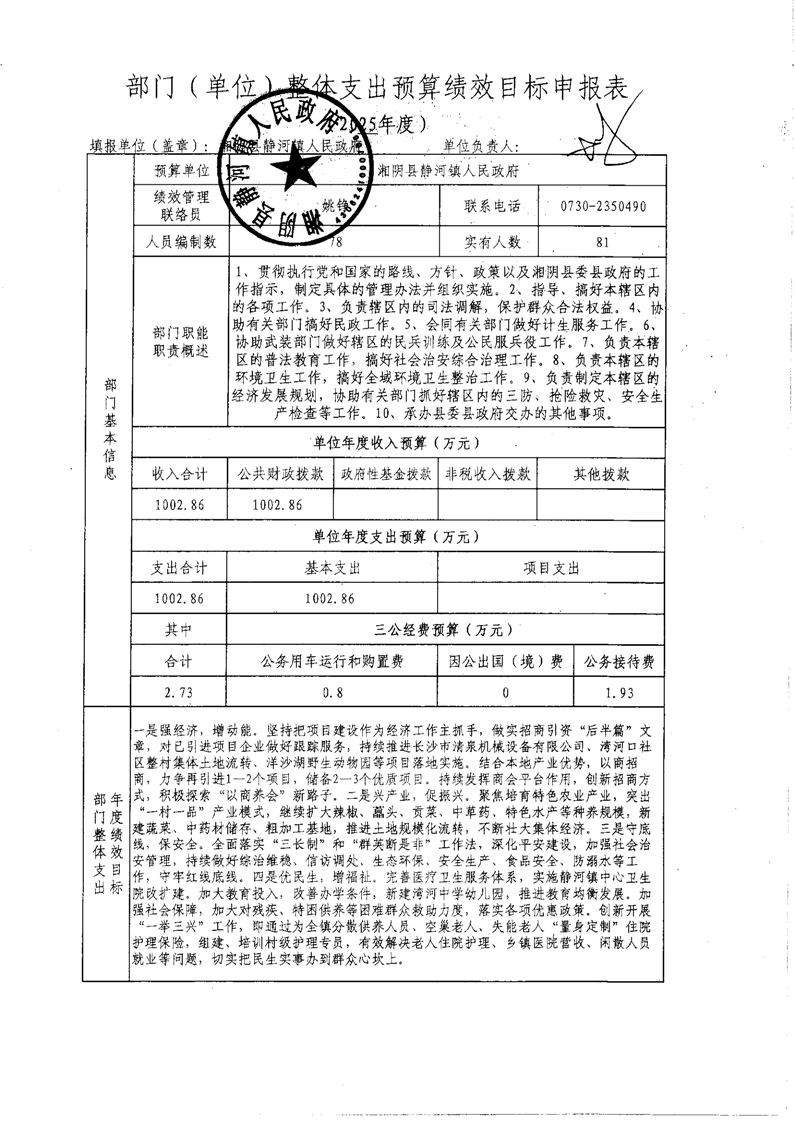 2025年-湘阴县静河镇人民政府-预算绩效公开