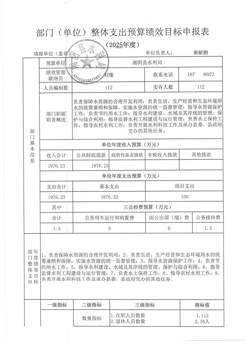 2025年-湘阴县水利局-整体支出预算绩效目标申报表公开