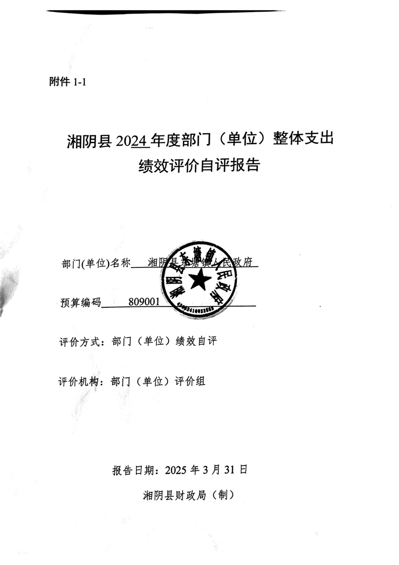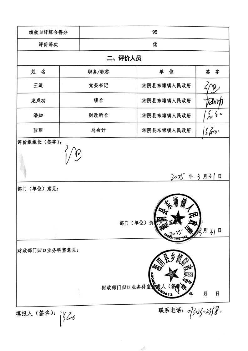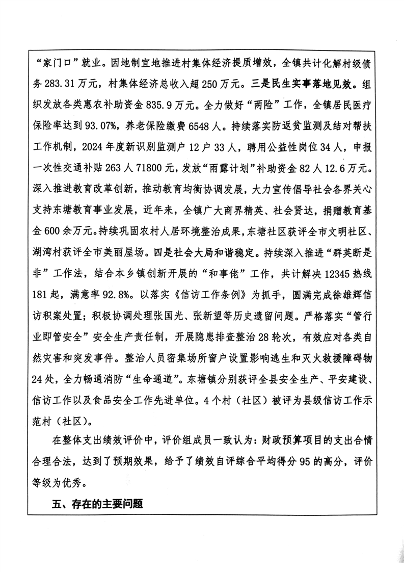 湘阴县东塘镇人民政府2024年度整体支出绩效评价自评报告