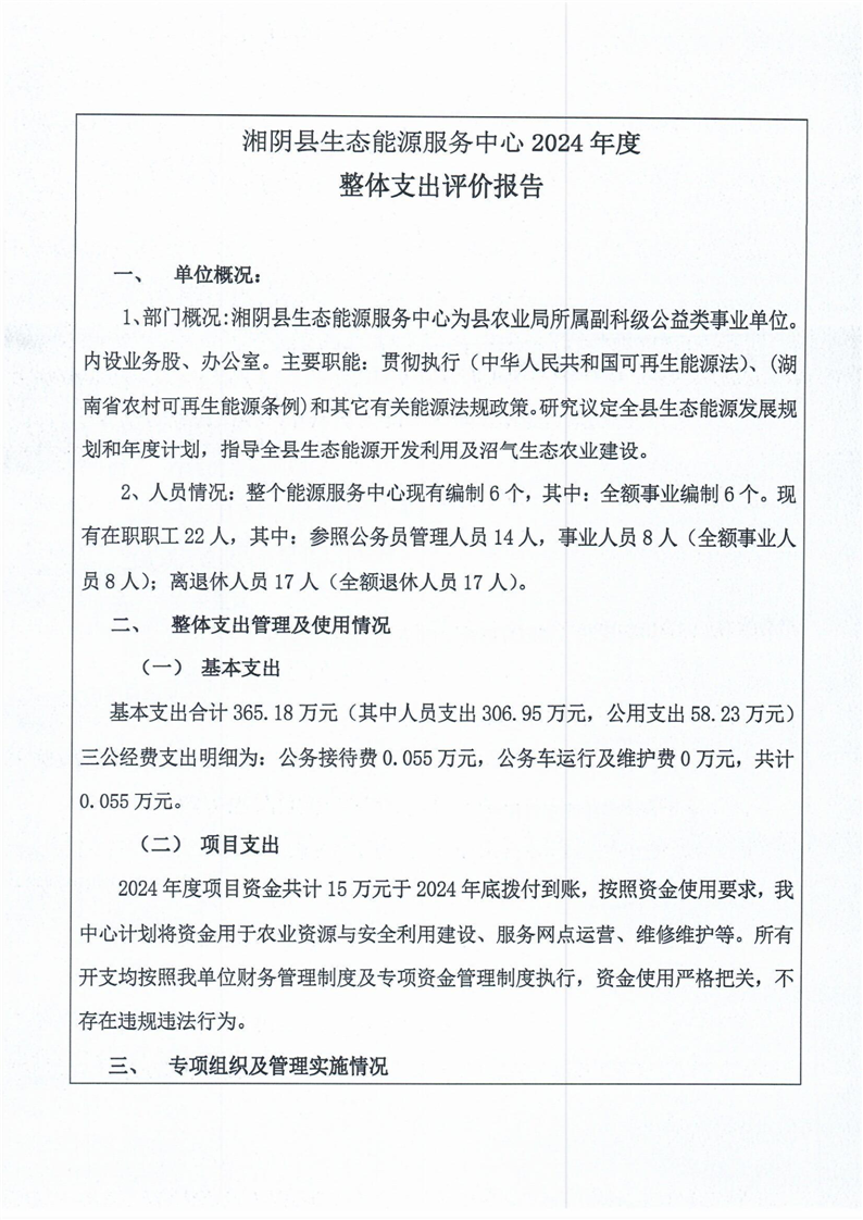 2024年度-湘阴县生态能源服务中心-整体支出绩效评价报告