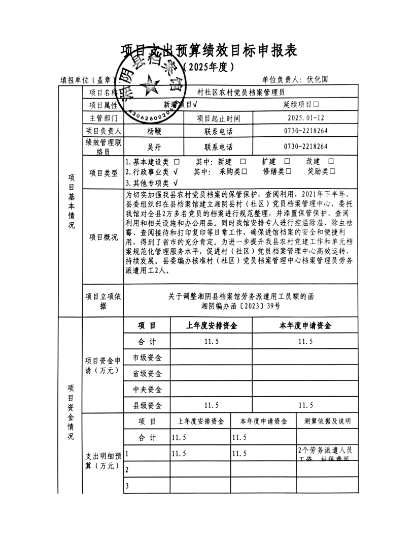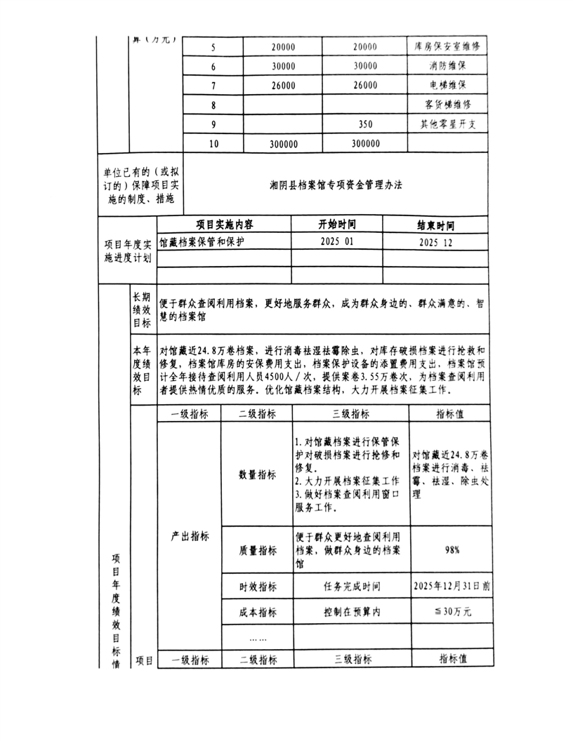 2025年-湘阴县档案馆-整体、项目支出预算绩效目标申报表