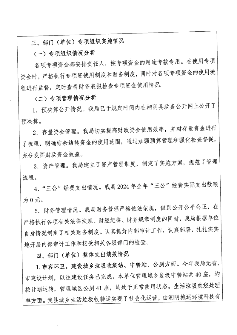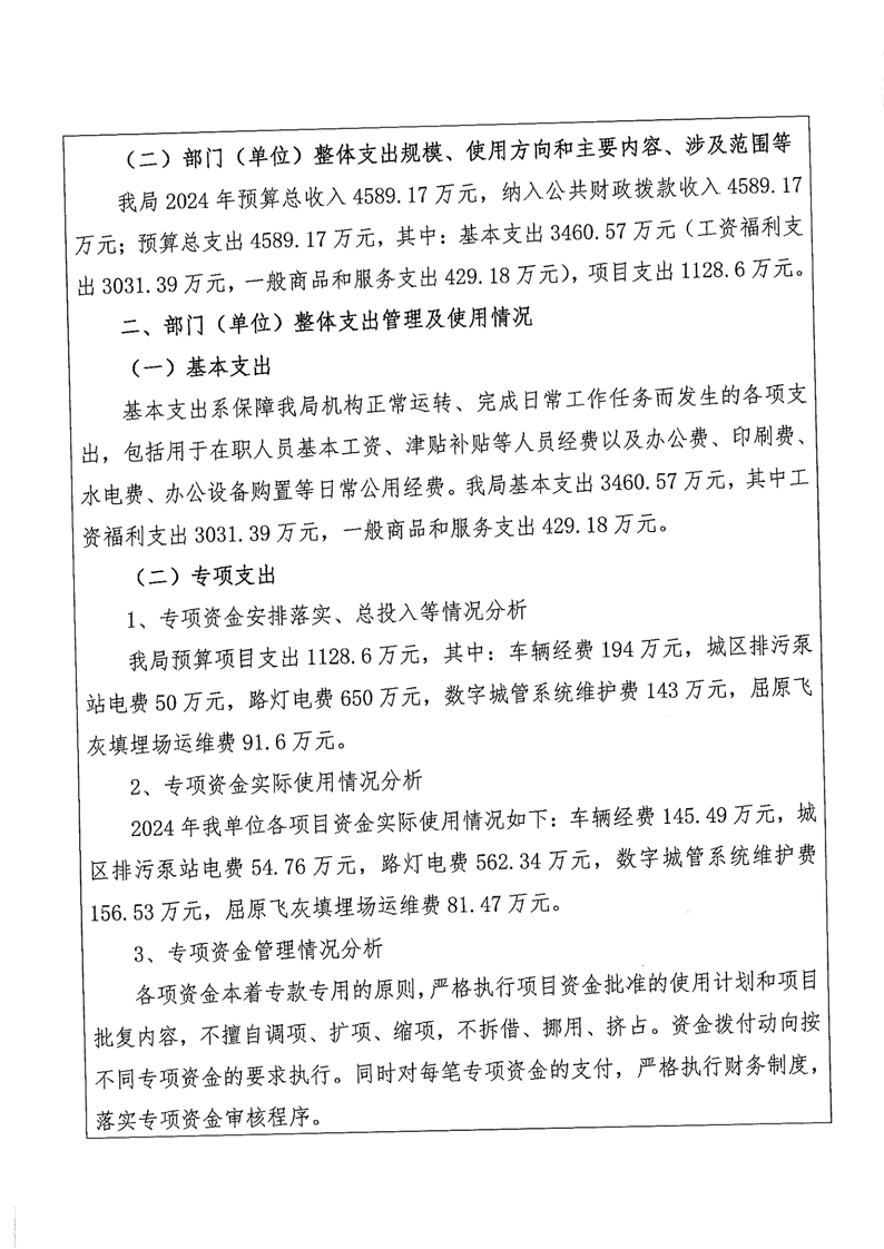 2024年度-城市管理和综合执法局-整体支出绩效评价自评报告