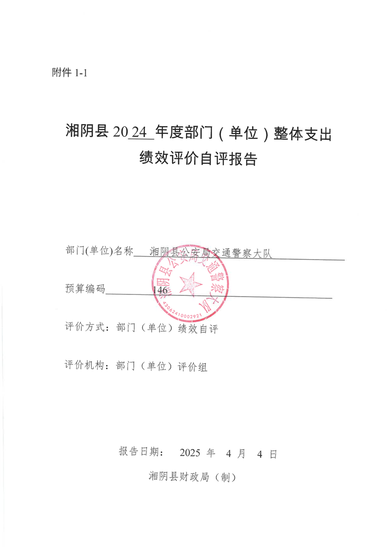 2024年度-湘阴县公安局交警大队-整体支出绩效自评报告