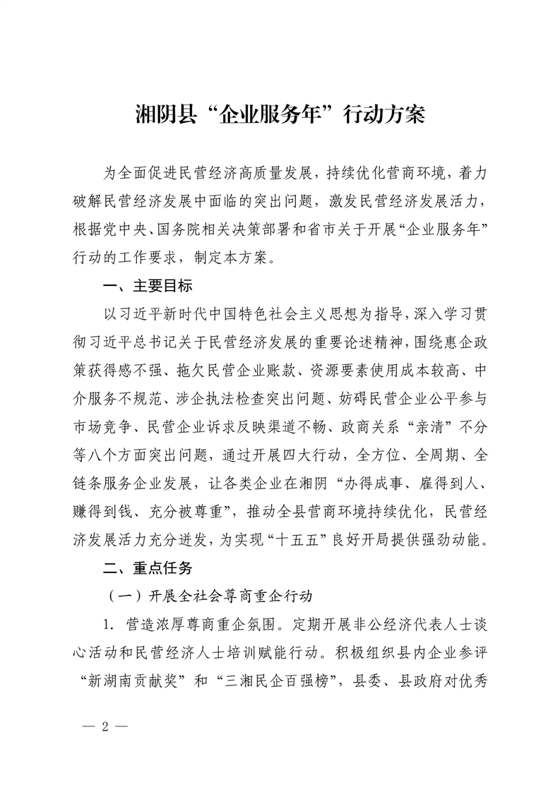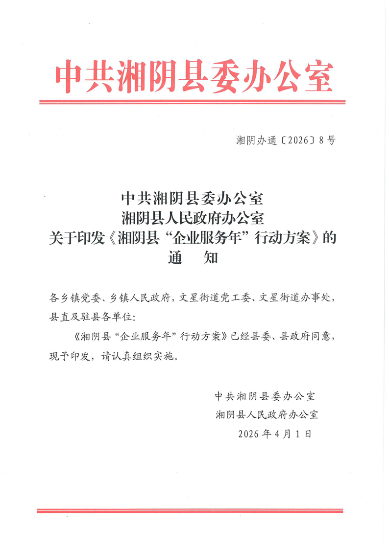 中共湘阴县委办公室 湘阴县人民政府办公室关于印发《湘阴县“企业服务年”行动方案》的通知