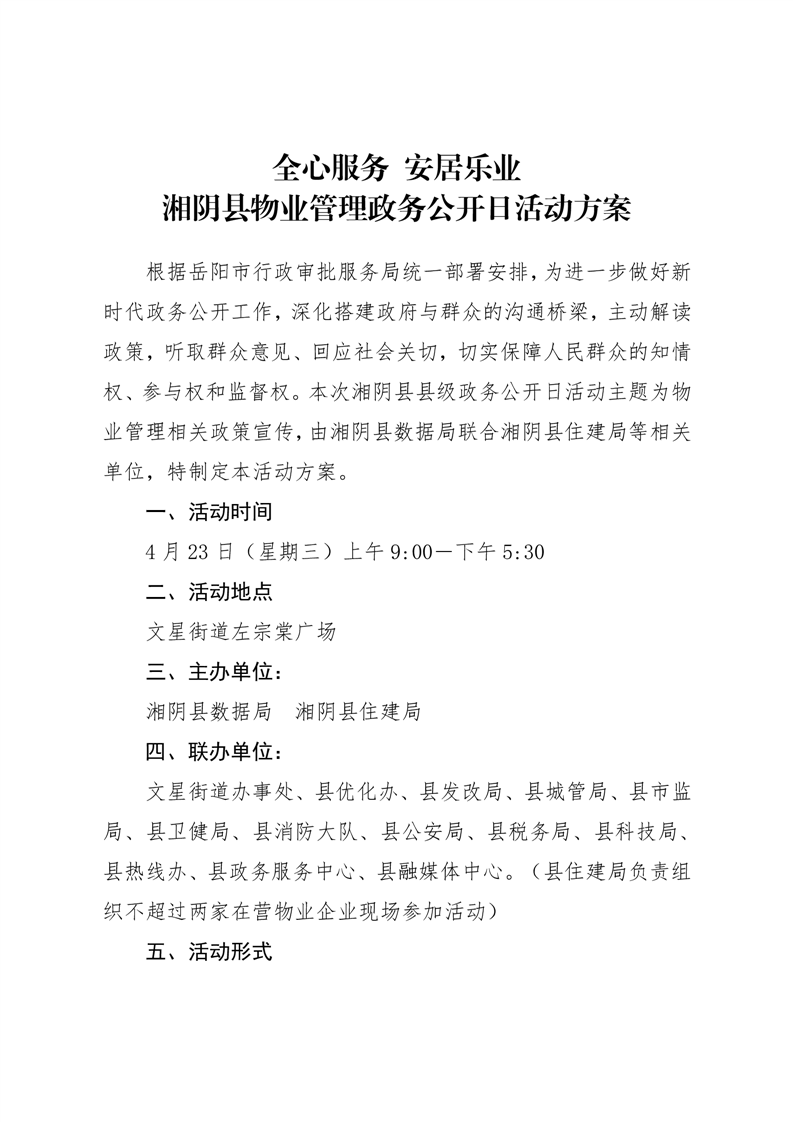 全心服务 安居乐业 湘阴县物业管理政务公开日活动方案