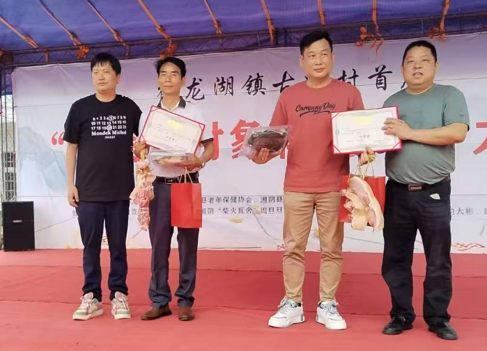 “活力四射,棋乐融融”,5月20日,湖南湘阴鹤龙湖镇古潭村首届“和美乡村”象棋村甲(象棋乡村甲级联赛)暨古潭村象棋村甲村级代表队选拔赛举行,32位村民经过5轮楚河汉界激烈鏖战,周红亮、李新凯、蒋国红、刘建军、陈红亮、李公社、苏尚、邱聪8位村民入选古潭村“象棋村甲”村队,这也是湖南首支正式成立的象棋村甲村级代表队。获奖选手和村队队员收获莲花甲鱼、湖湘莲藕、家养土猪肉、土鸡,土榨菜油和“象棋村甲”纪念水杯等奖品,幸福之情溢于言表。即日起,古潭村代表队将随时接受全国其他省市县乡镇村的村级代表队挑战和“踢馆”。