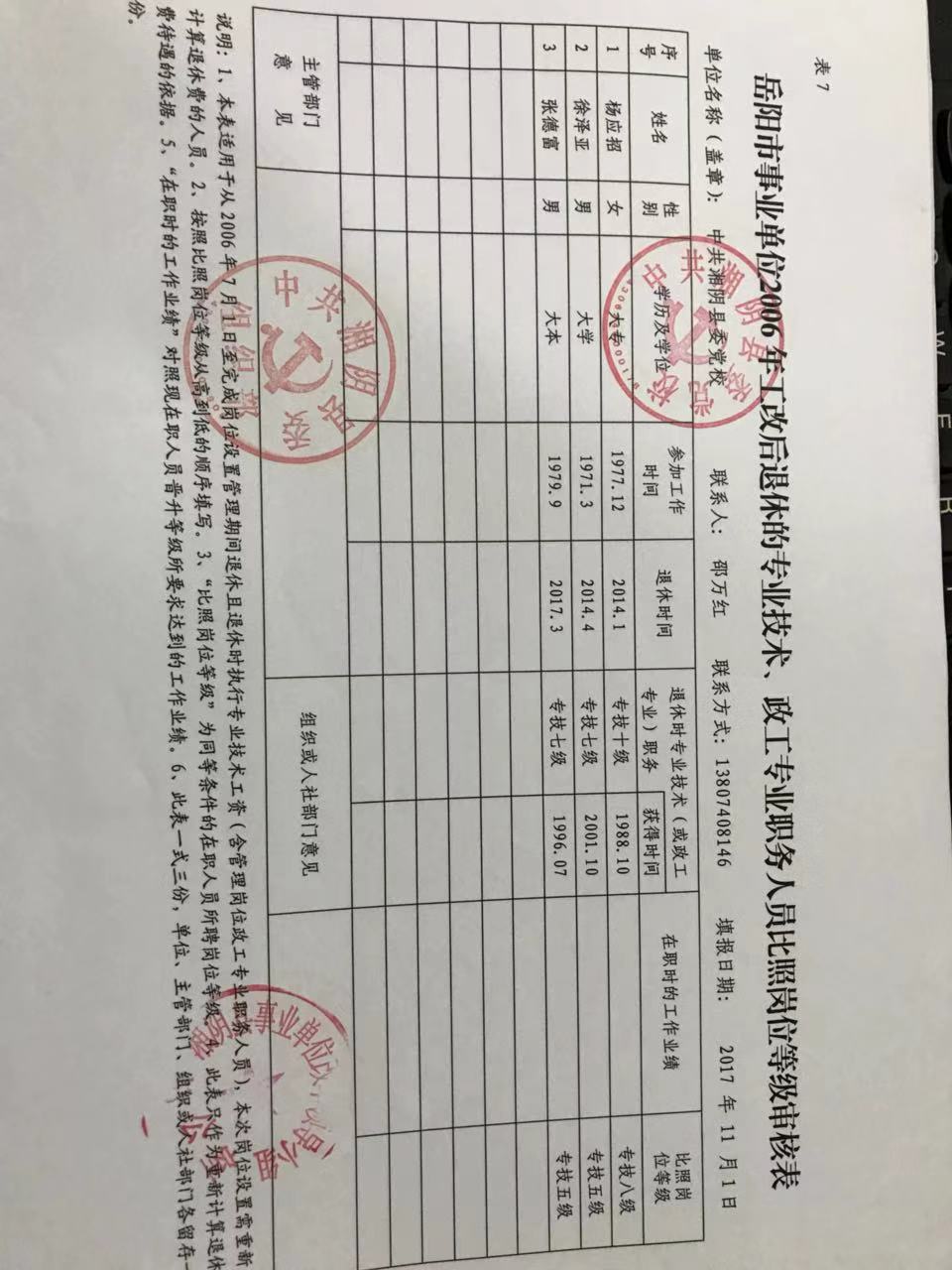 我叫张德富,县委党校原副校长,1996年晋升为高级讲师。2017年3月办理退休手续。2011年全县专业技术人员晋级晋档时遗漏了党校,到2016年我们发现这个问题后就与市、县人社部门交涉,直到2018年3月才将党校的专业技术人员职称晋级晋档工作审批落实。落实后党校在职的专业技术人员和2014年9月30日前退休的专业技术人员的工资待遇都落实并补发了工资,唯独我这个2017年3月退休的只有由专技七级晋为专技五级的审批,没有落实工资待遇。这次2014年9月30日以后退休的人员正在核算老金,党校十分重视找人社局工资办进行了沟通,工资办比照专技五档审批了我的工资,党校将审批表交给了养老金重新核算办后没有釆纳,多次沟通后说这个审批表不能增加工资,找工资办沟通,工资办说只有这种审批表,结果这个问题一直没有解决,养老金核算没有增加我的工资。特将这个情况反映给县长,请帮助我这个已经退休的的专业技术人员解决这个问题。谢谢县长!