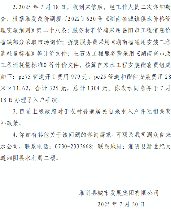 | 标题: | 关于农村居民自来水入户安装问题咨询 |